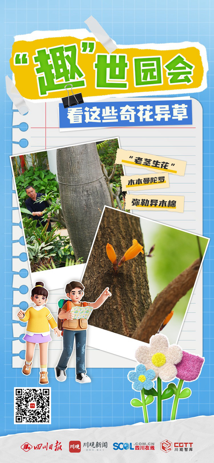 长着“大肚子”的弥勒异木棉,挂着“葡萄”的嘉宝果,花果开在“老茎”上的火烧花,“妖艳毒花”木本曼陀罗,还有热带雨林的奇观小叶榕……来自全球各地的“神奇植物”在这里奇妙相遇。