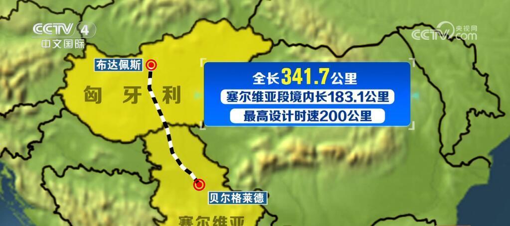 匈塞铁路起自塞尔维亚首都贝尔格莱德,终至匈牙利首都布达佩斯,全长341.7公里。其中,塞尔维亚段境内长183.1公里,最高设计时速200公里。