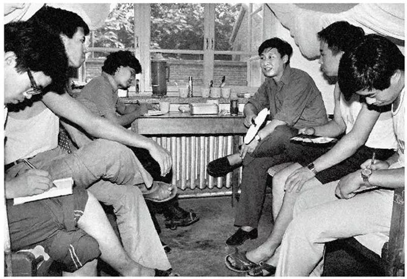 1984年7月29日,习近平与中国人民大学暑期社会实践团成员在正定县政府招待所宿舍座谈。