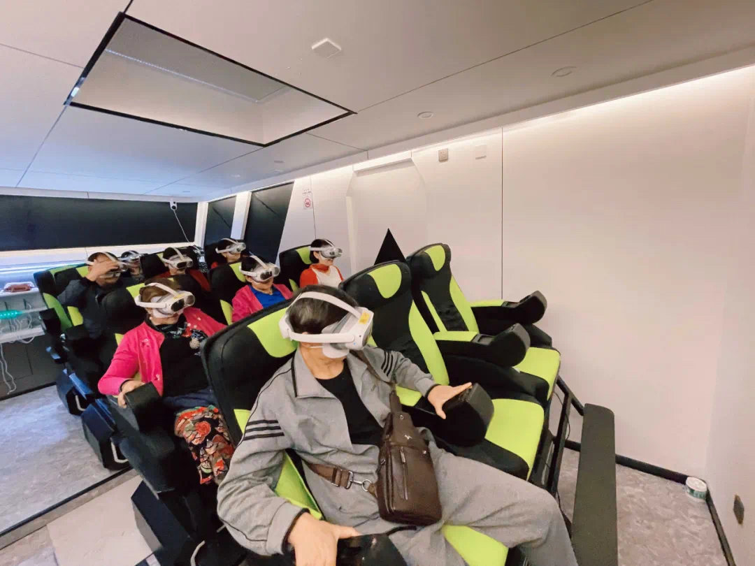 “飞行巴士”一次可以容纳12名游客,在20多分钟的游览体验中,游客坐在4D座椅上,头戴720度全景VR眼镜,画面启动,游客仿佛置身于绿色海洋,耳边微风轻拂、竹叶沙沙作响。