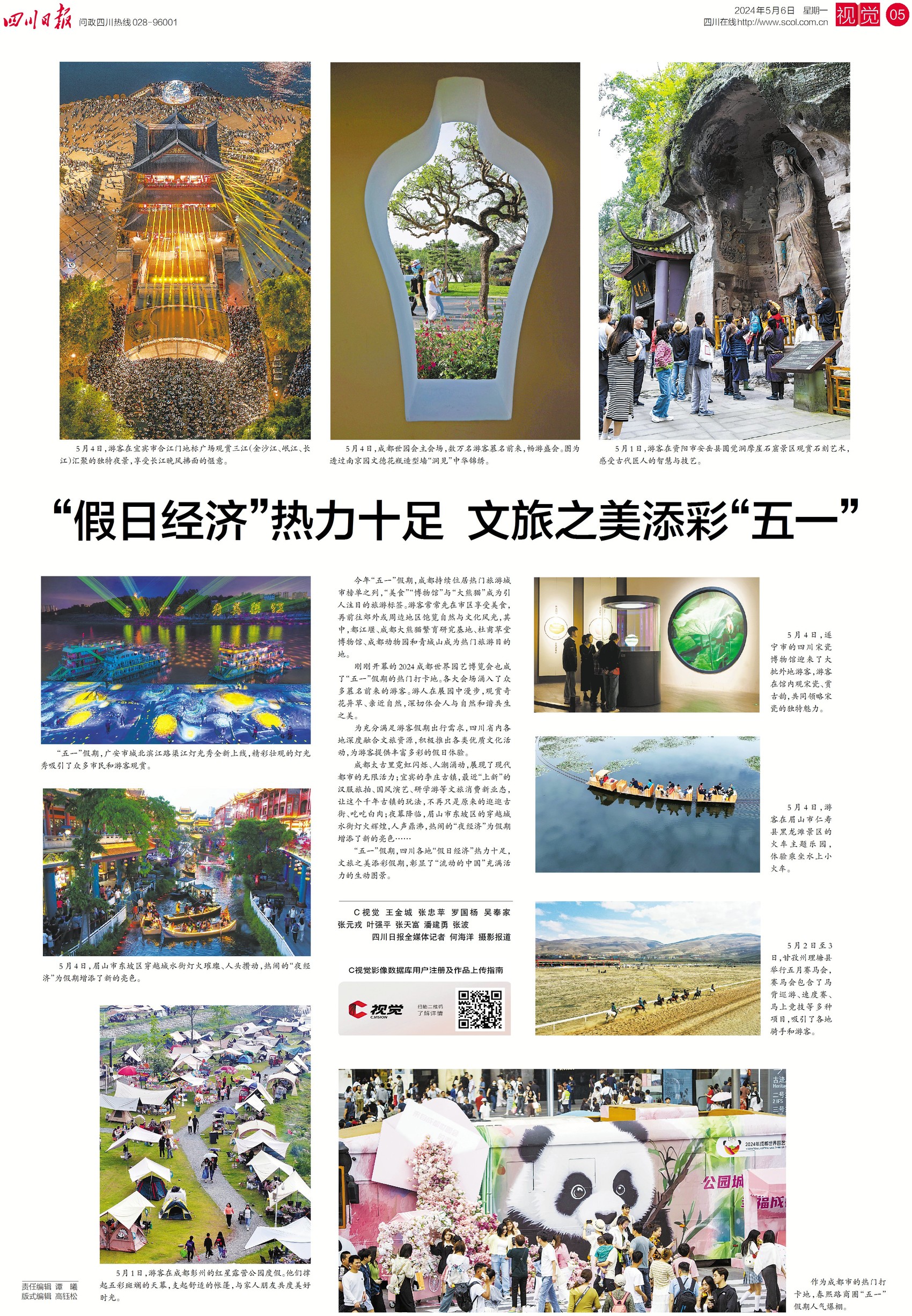 “五一”假期,成都太古里霓虹闪烁、人潮涌动,展现了现代都市的无限活力;宜宾的李庄古镇,汉服旅拍、国风演艺、研学游等文旅消费新业态,让这个千年古镇的玩法,不再只是原来的逛逛古街、吃吃白肉;眉山市东坡区的穿越城水街灯火辉煌,人声鼎沸,热闹的“夜经济”为假期增添了新的亮色……今日视觉版,带您回眸四川各地“五一”假期的“热辣滚烫”。