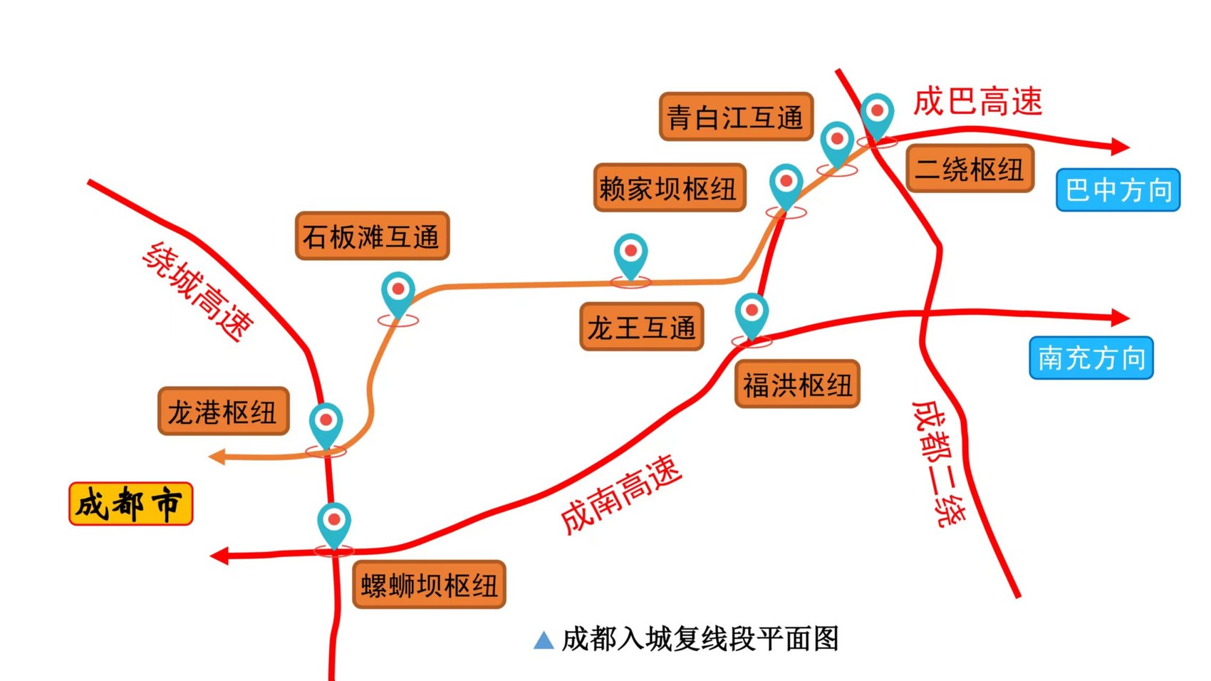 该路段的建成通车将打通成南高速最拥堵路段,大幅提升成巴高速进出城车辆通行效率,进一步完善四川高速公路网。