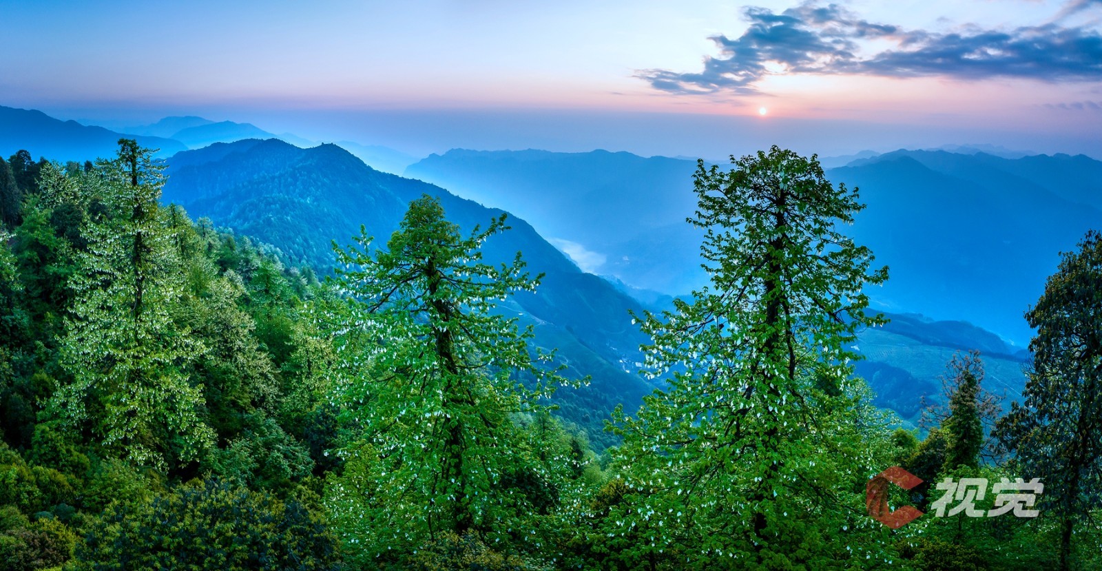 日出时分,大风顶自然保护区山峦叠嶂如仙境。