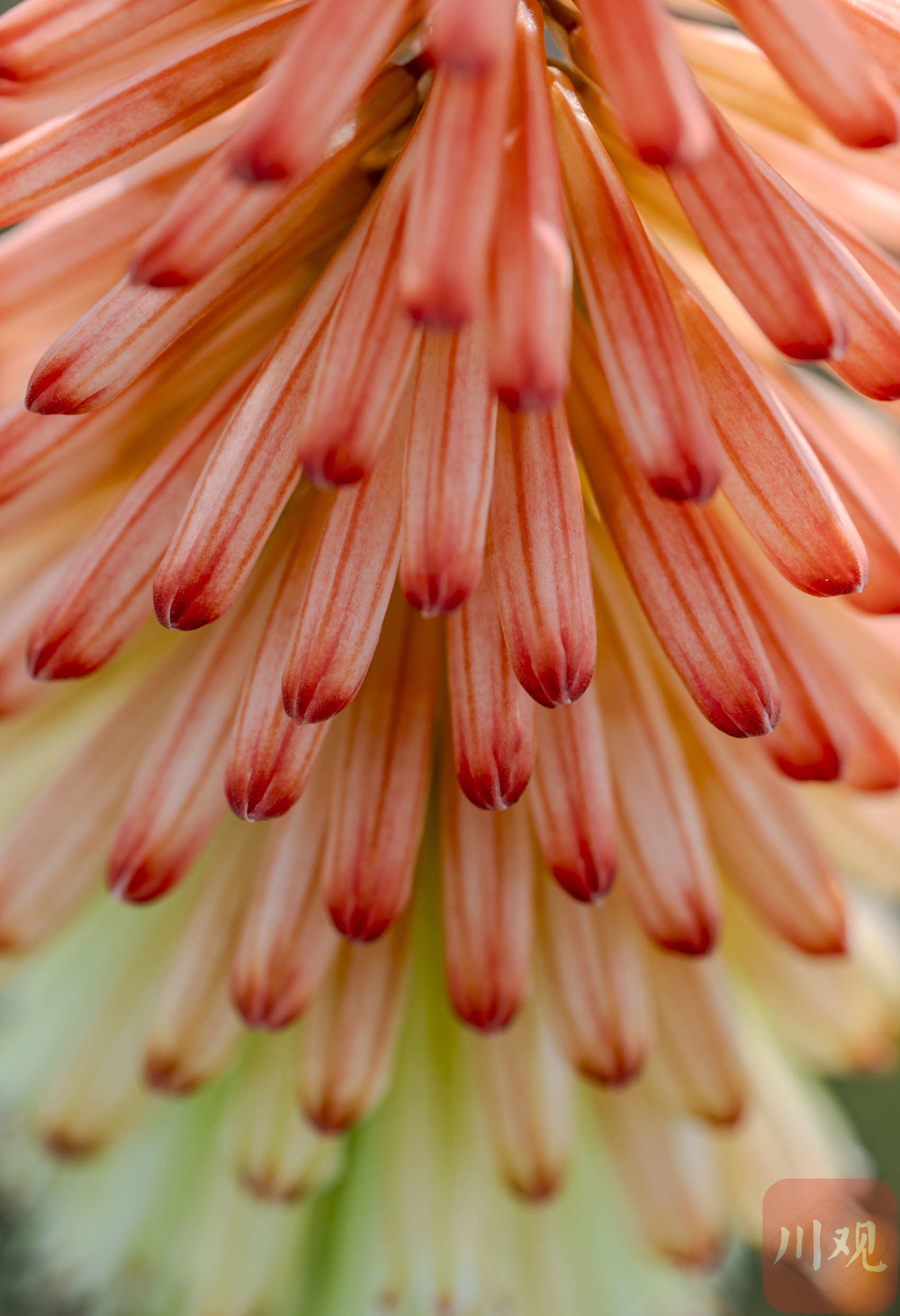火炬花,为多年生草本植物,花序长20-30厘米,由百余朵小花组成。花形、花色犹如燃烧的火把,原产非洲的南部地区,