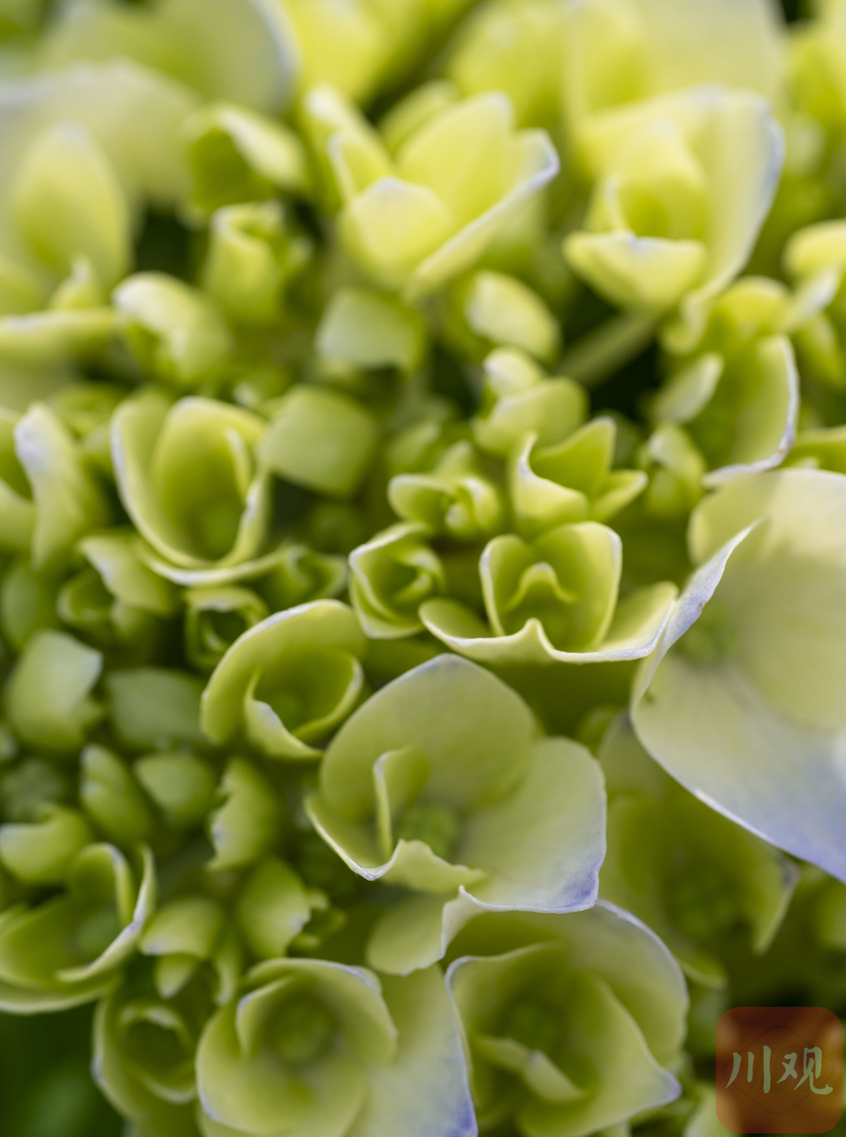 绣球,属木本植物。树冠为球形,花密集,粉红色、淡蓝色或白色,原产地中国、日本等。