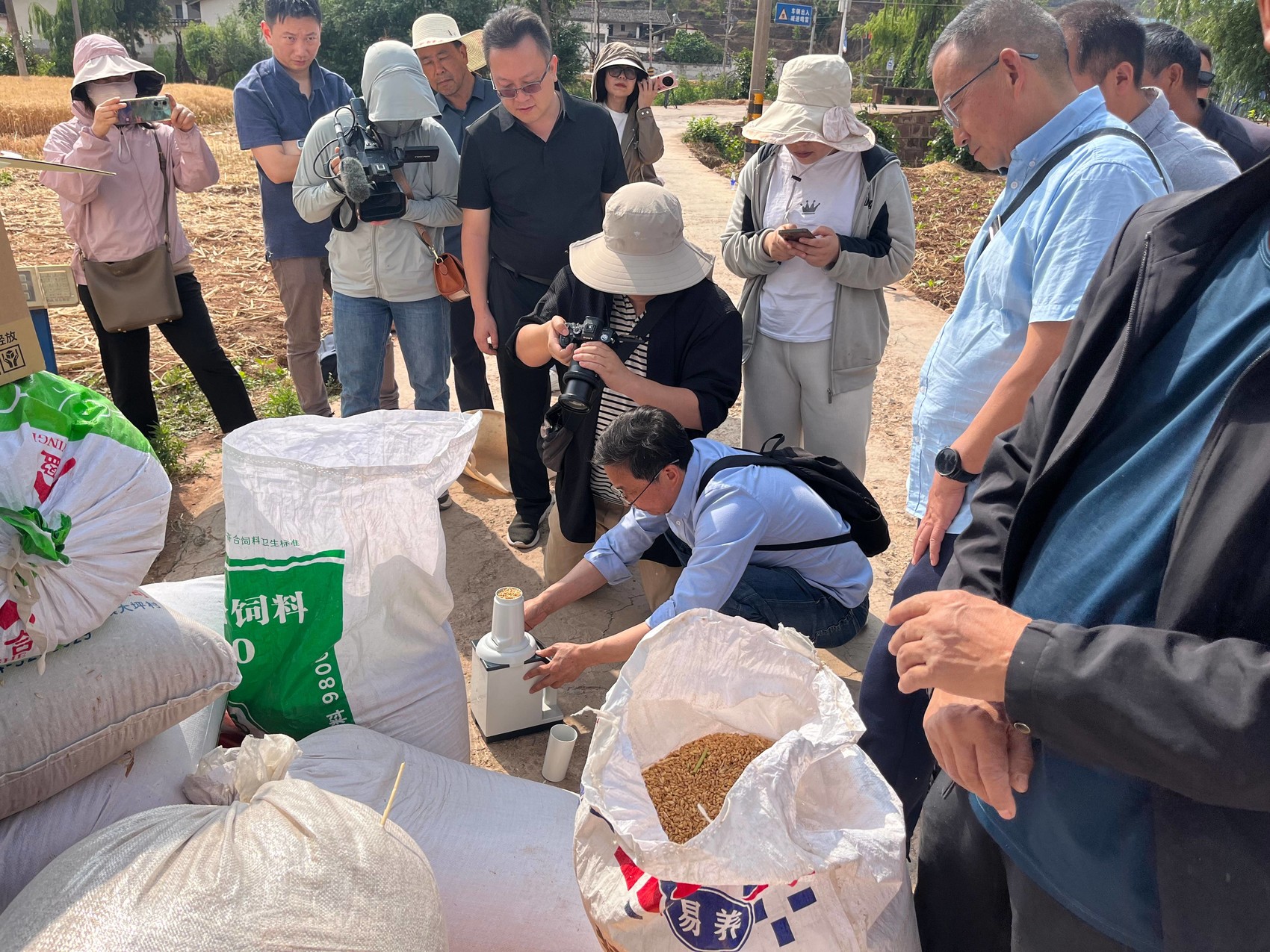 现场测小麦含水量。受访者供图