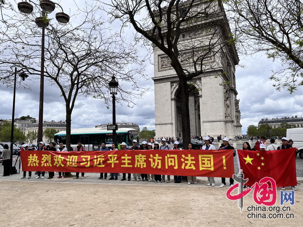 当地时间5月5日,在法华人迎接习近平主席到访。受访者供图