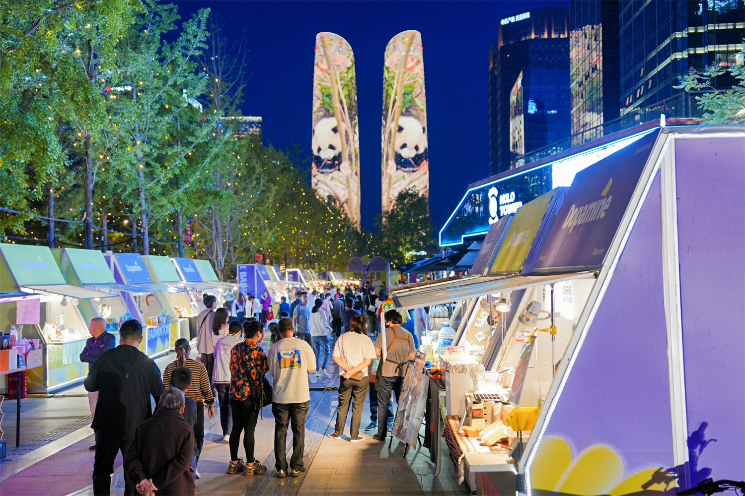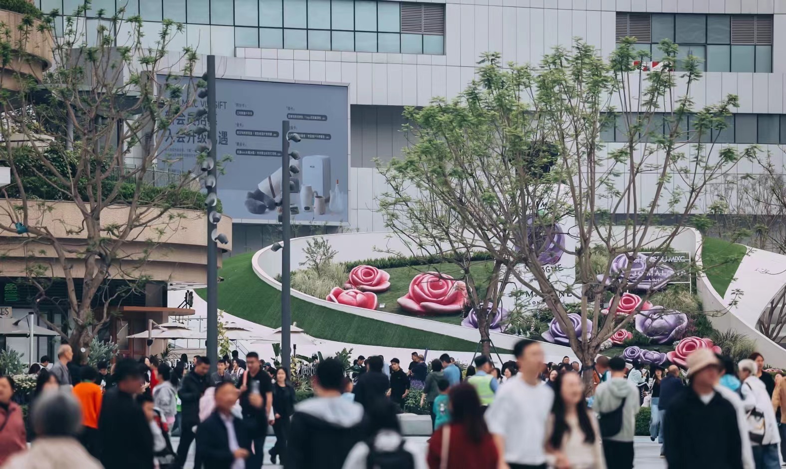 此外,最新官方数据显示,5月1日-5日,成都万象城日均客流达20.3万人次,整体零售额同比增长2%,斩获1.4亿元销售业绩。为迎接12周年庆,成都万象城围绕四川特色元素打造熊猫主题快闪店,推出10米巨型熊猫宝宝IP装置展、创意市集等一系列活动,迅速走红热门社交媒体平台,抢抓假日流量做强消费增量。