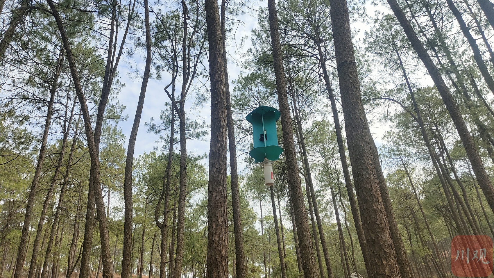 5月6日,走进凉山州西昌市四合国有林场,成片的飞播林郁郁葱葱。“一头、两头、三头……”取下两棵松树间挂设的诱捕器,林场职工吉伍尔体仔细数着诱捕到的天牛数量。