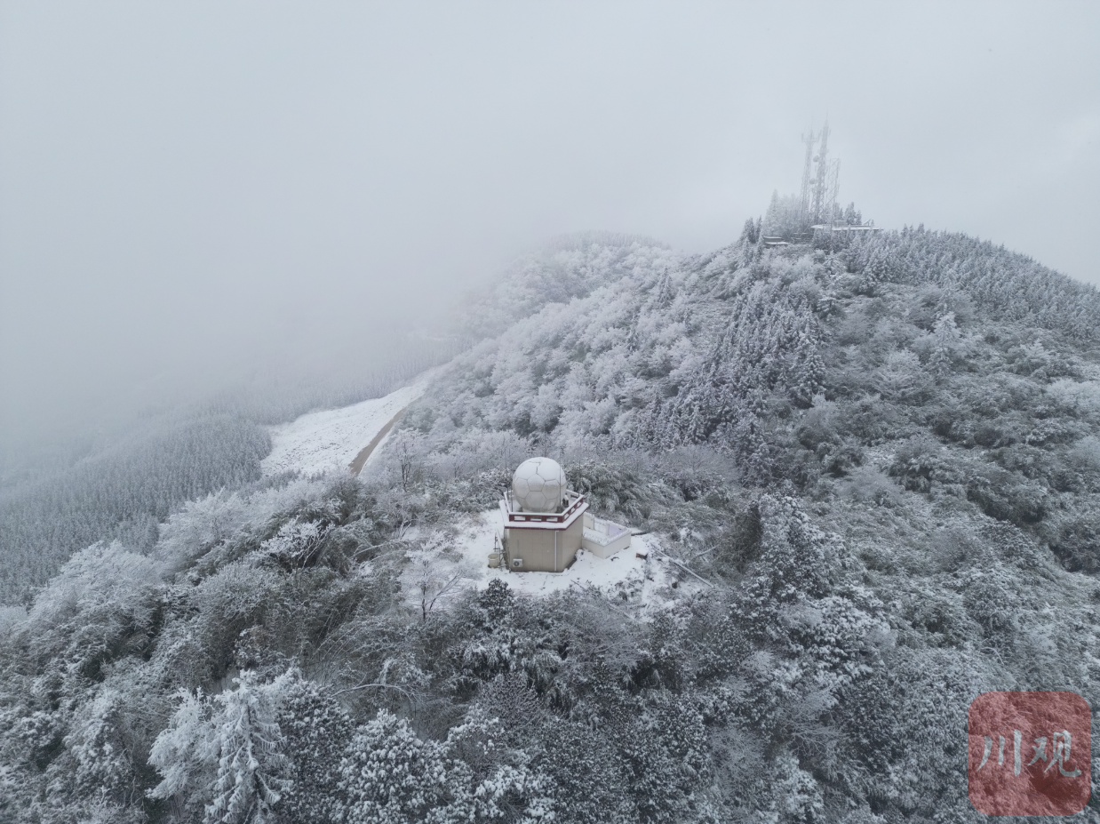 冬天被大雪覆盖的芦山水利测雨雷达。(芦山县水利局供图)