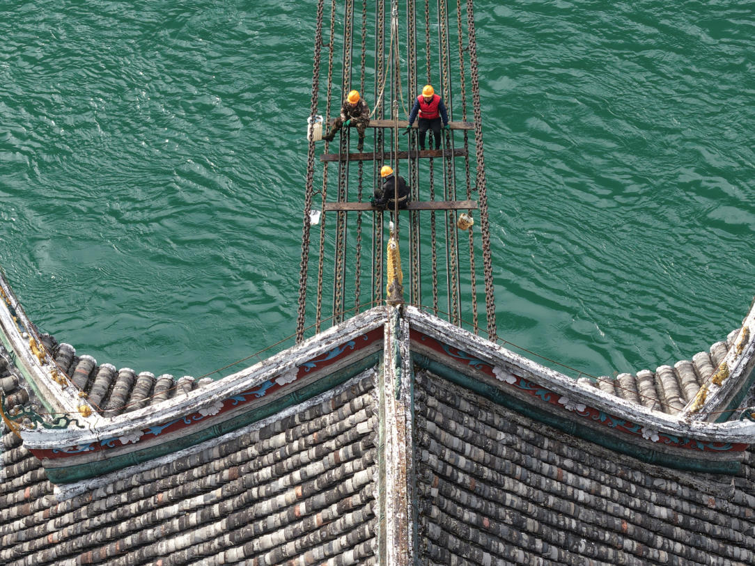 通过水利测雨雷达开展水情监测预报,洪水预见期一般可延长1—2小时。图为航拍芦山水利测雨雷达。