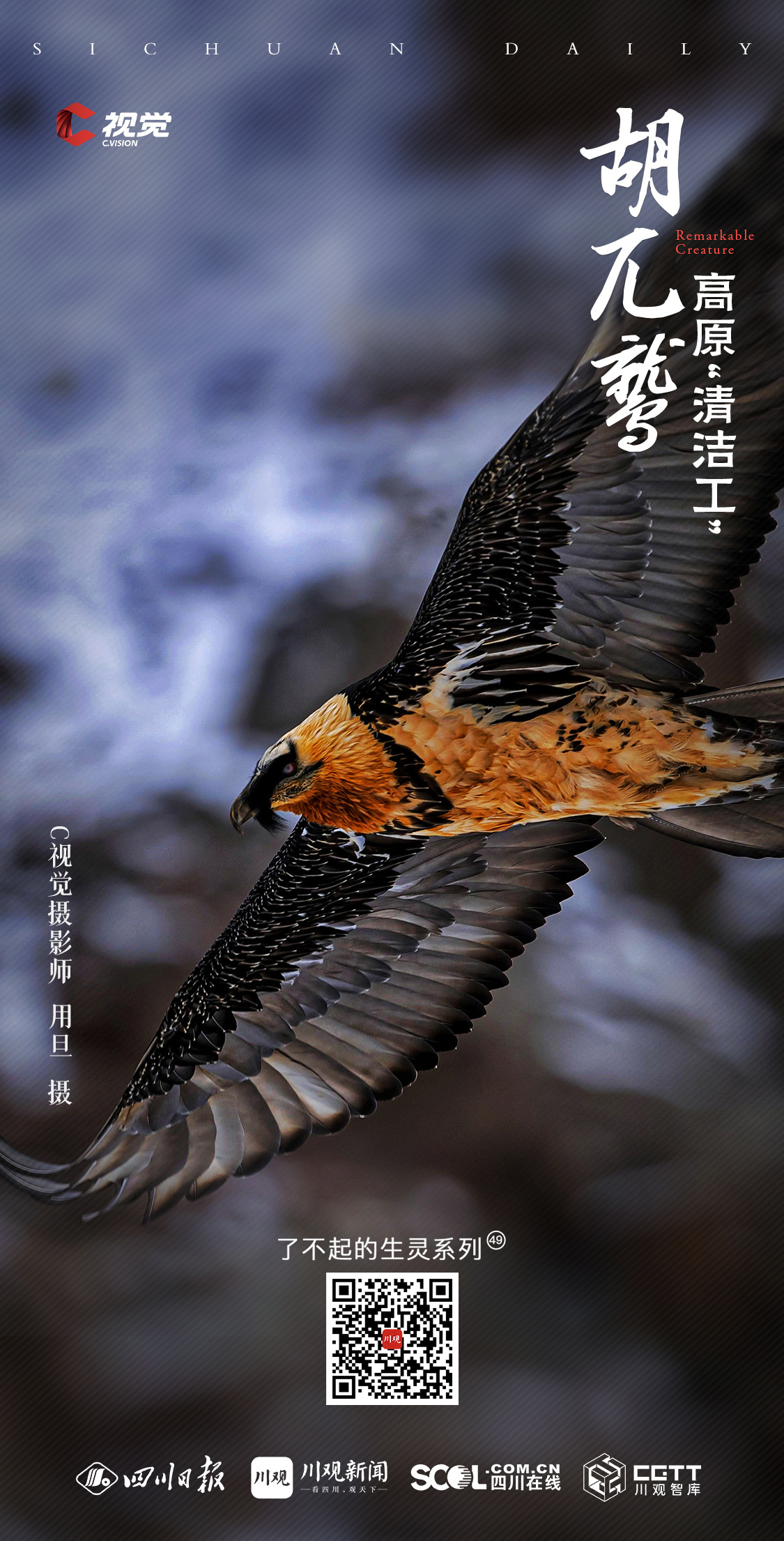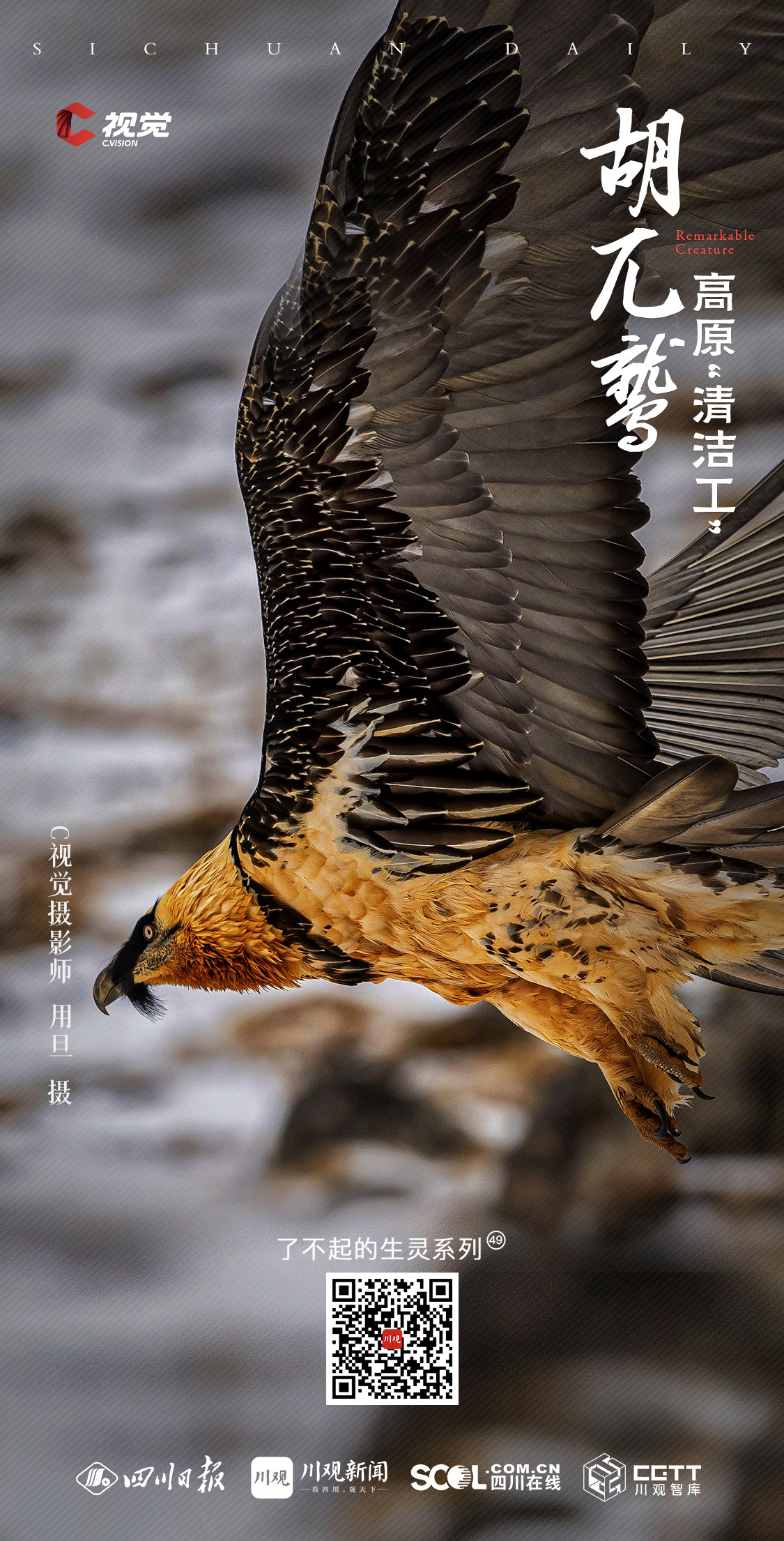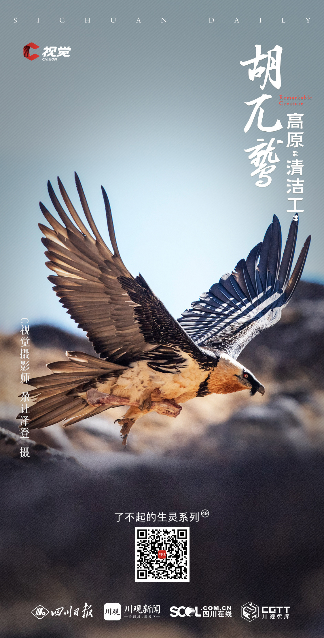 C视觉摄影师尕让泽登自2007年起开始接触摄影,工作与生活在高原的独特环境,使他自始便对这片土地上的珍稀野生动物投以深切的关注与持续的镜头记录。在本期《了不起的生灵》栏目中,他与友人携手分享了一组国家一级保护动物——胡兀鹫的摄影作品,透过镜头背后的故事,带领我们深入了解拍摄高原野生动物的非凡经历。