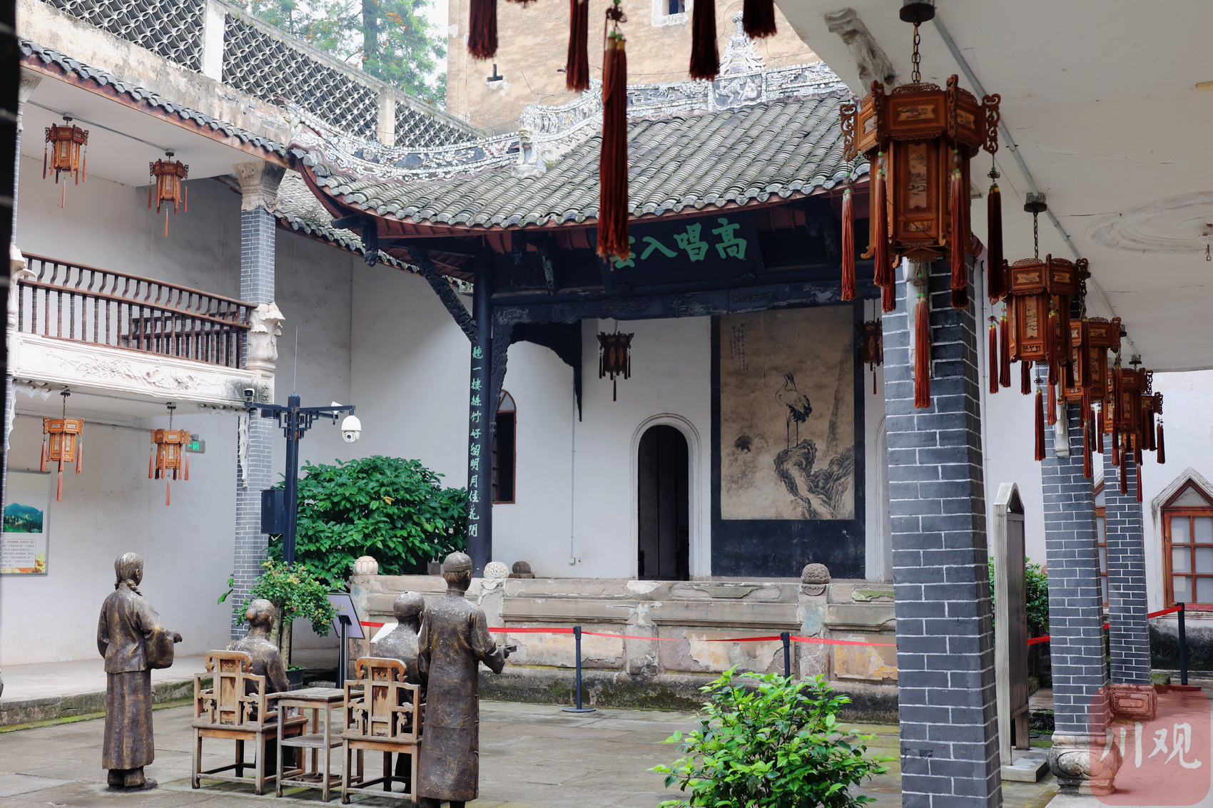 前厅、后院、祠堂、戏台、碉楼、凉亭……置身其中,明显感到其规模庞大、布局错落有致、建筑结构精巧。虽是典型的川南高墙碉楼民居,但弧形的窗顶、石雕的雕栏等,又是明显的西式风格,而“内外双大门”“九道拐”“射击孔”等设计,充分体现出当时的建筑设计智慧。