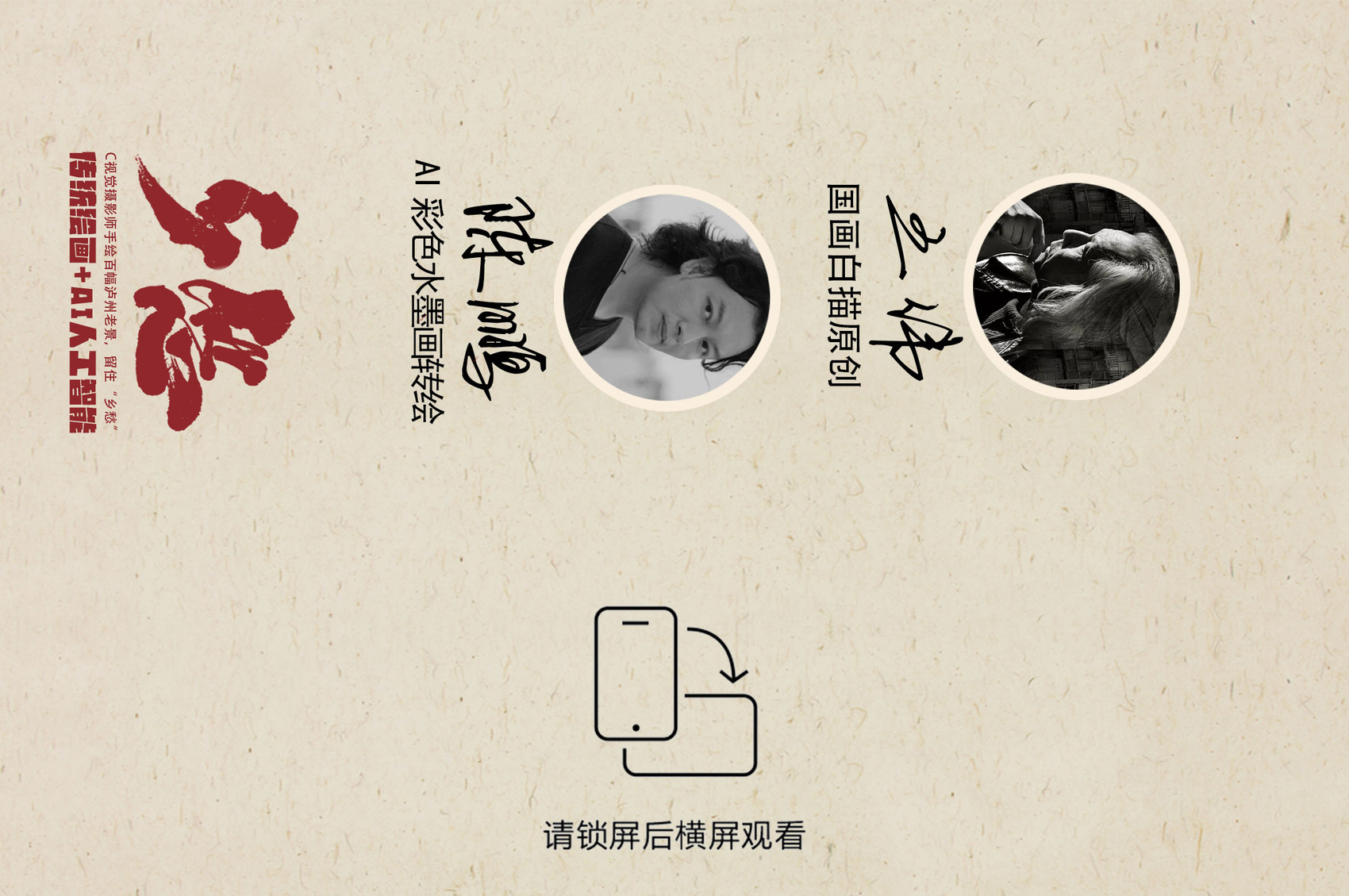 以下图片C视觉插画师用AI转绘技术,将白描线稿转绘成水墨画后的对比图: