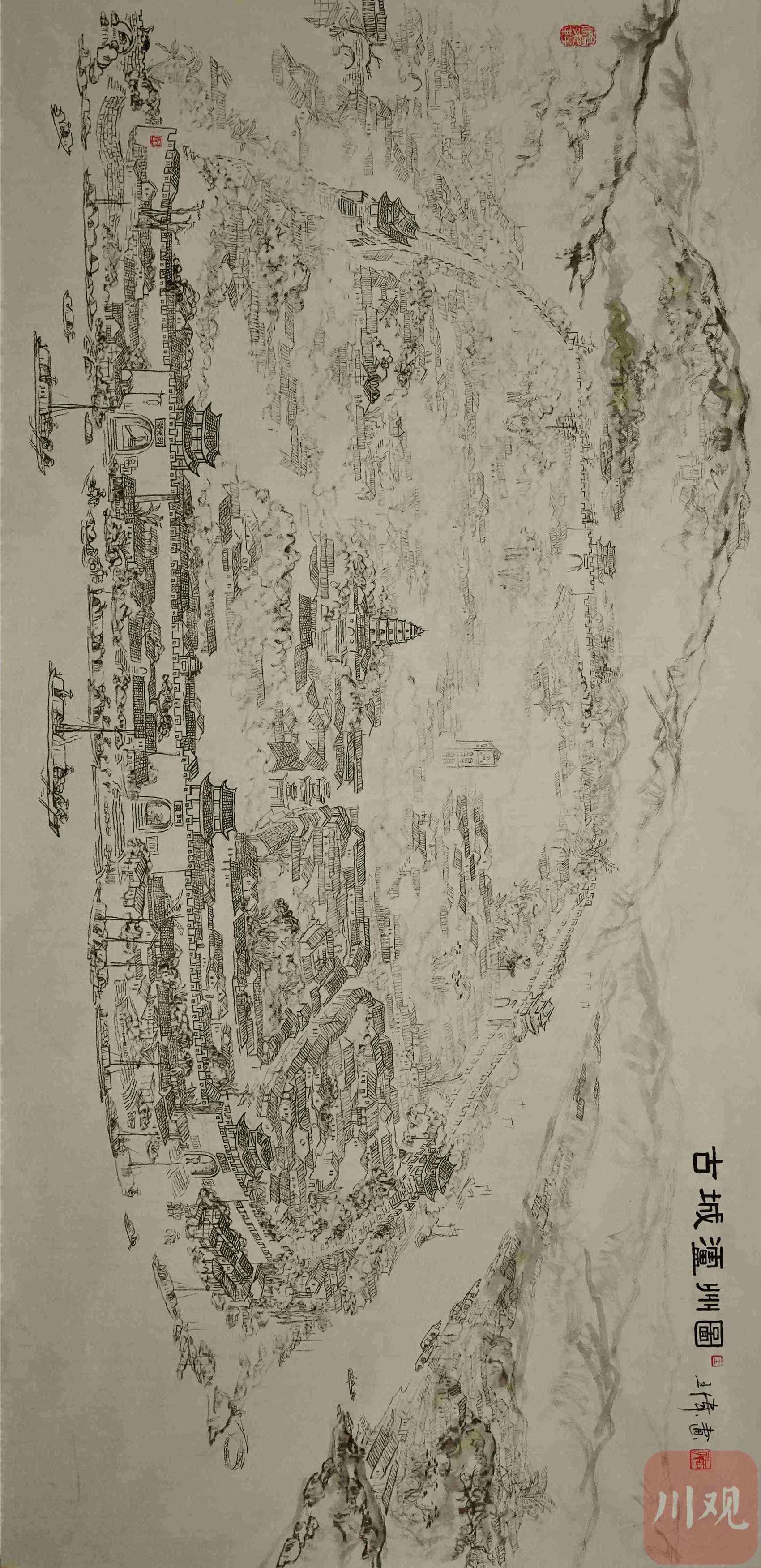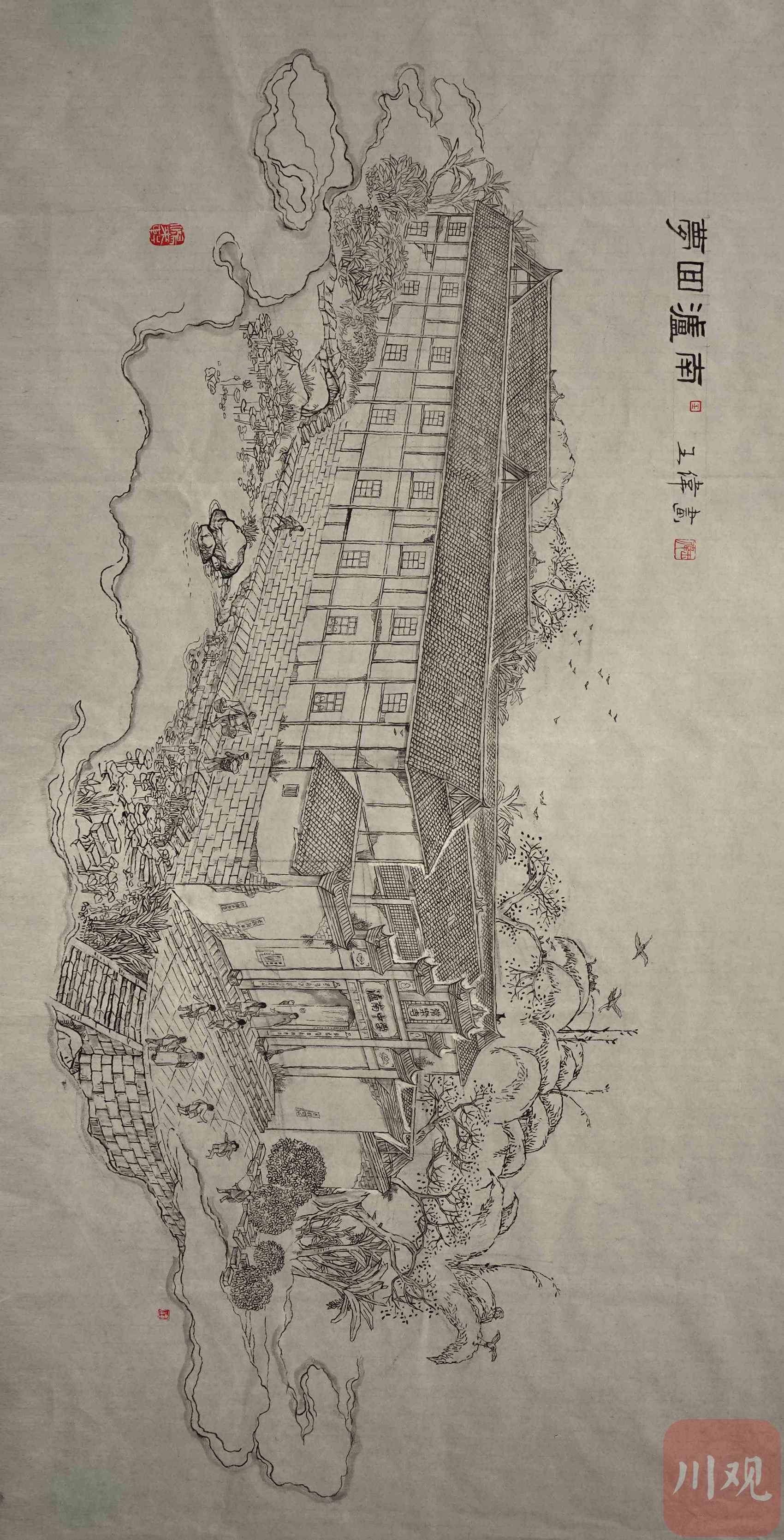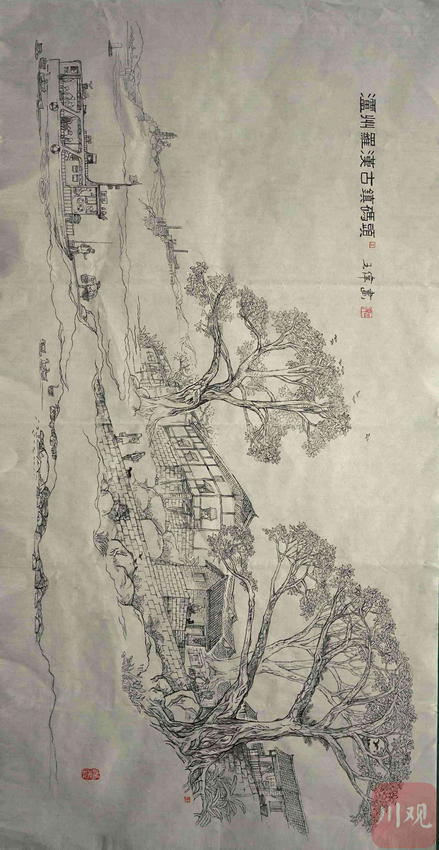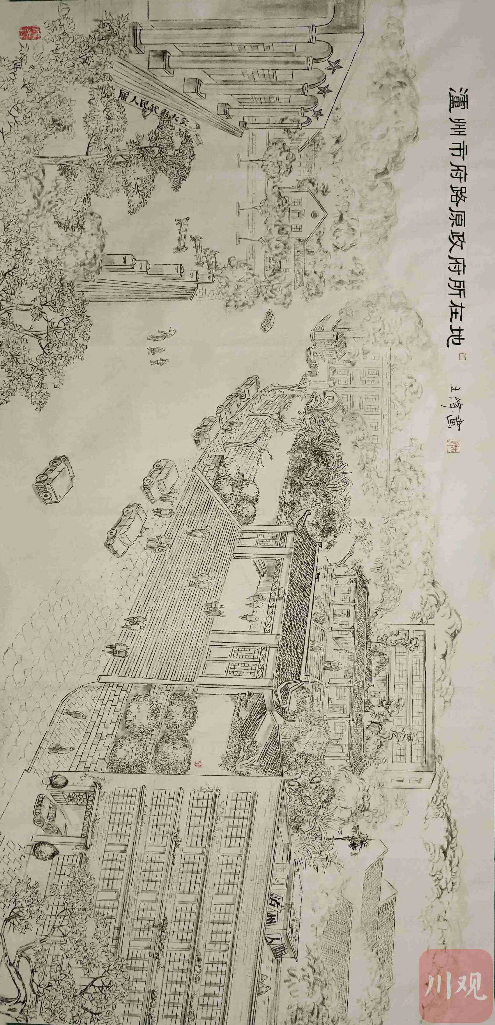 C视觉摄影师王伟,耗时一年半精心创作,运用国画白描技艺完成了百幅《梦回老泸州》系列作品。他凭借摄影师独特的视角与航拍的宽广视野,跨越百年光阴,细腻勾勒出泸州:既有城市百年前的古朴风貌,亦涵盖上世纪九十年代的近景轮廓,尤以生动再现五六十年代江阳半岛主城区的繁华景象最为引人入胜。