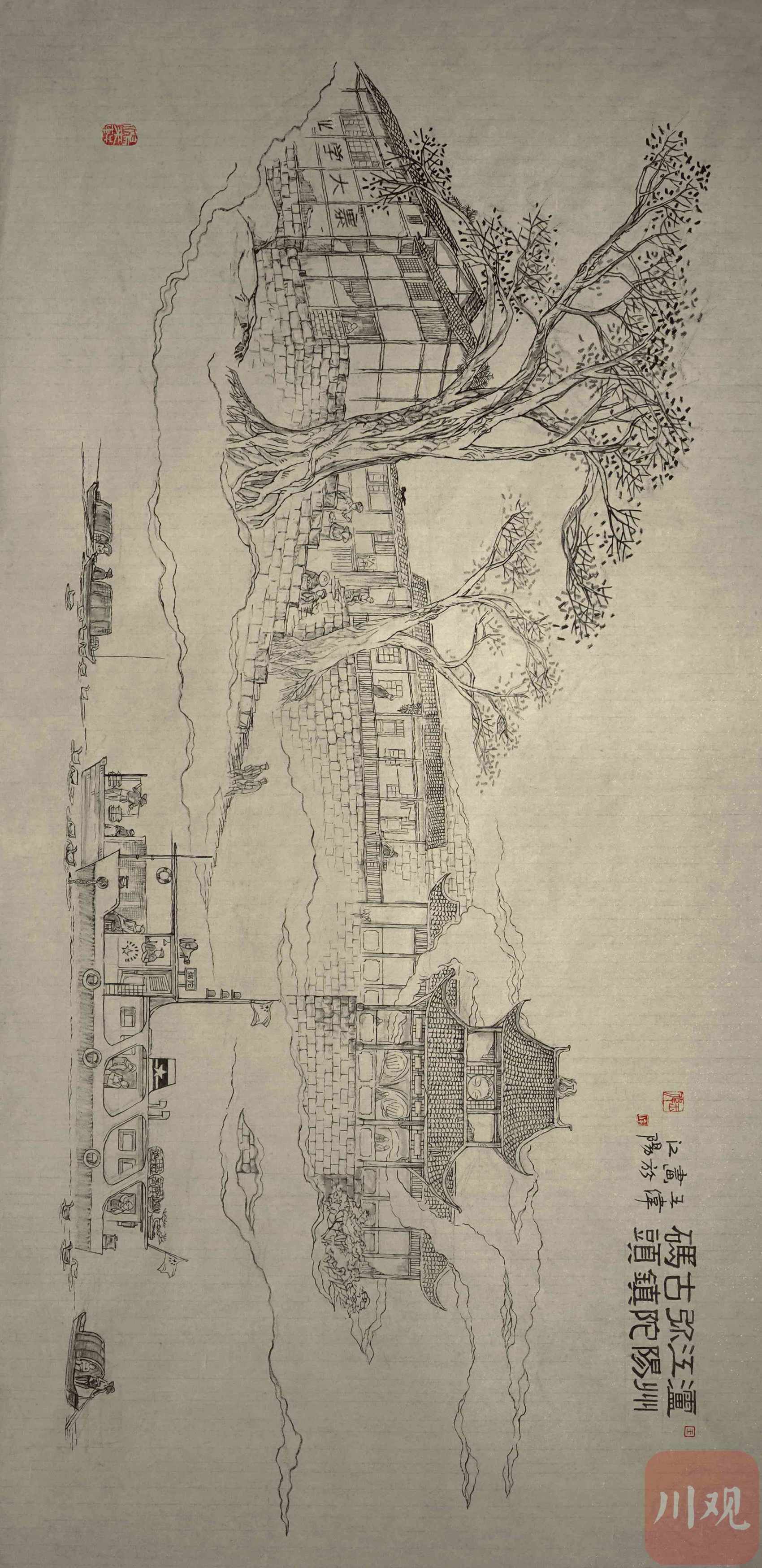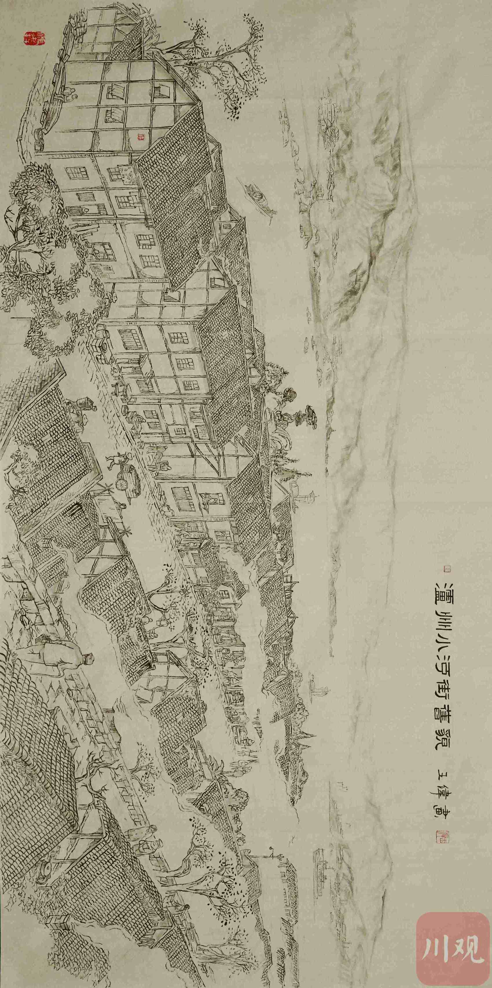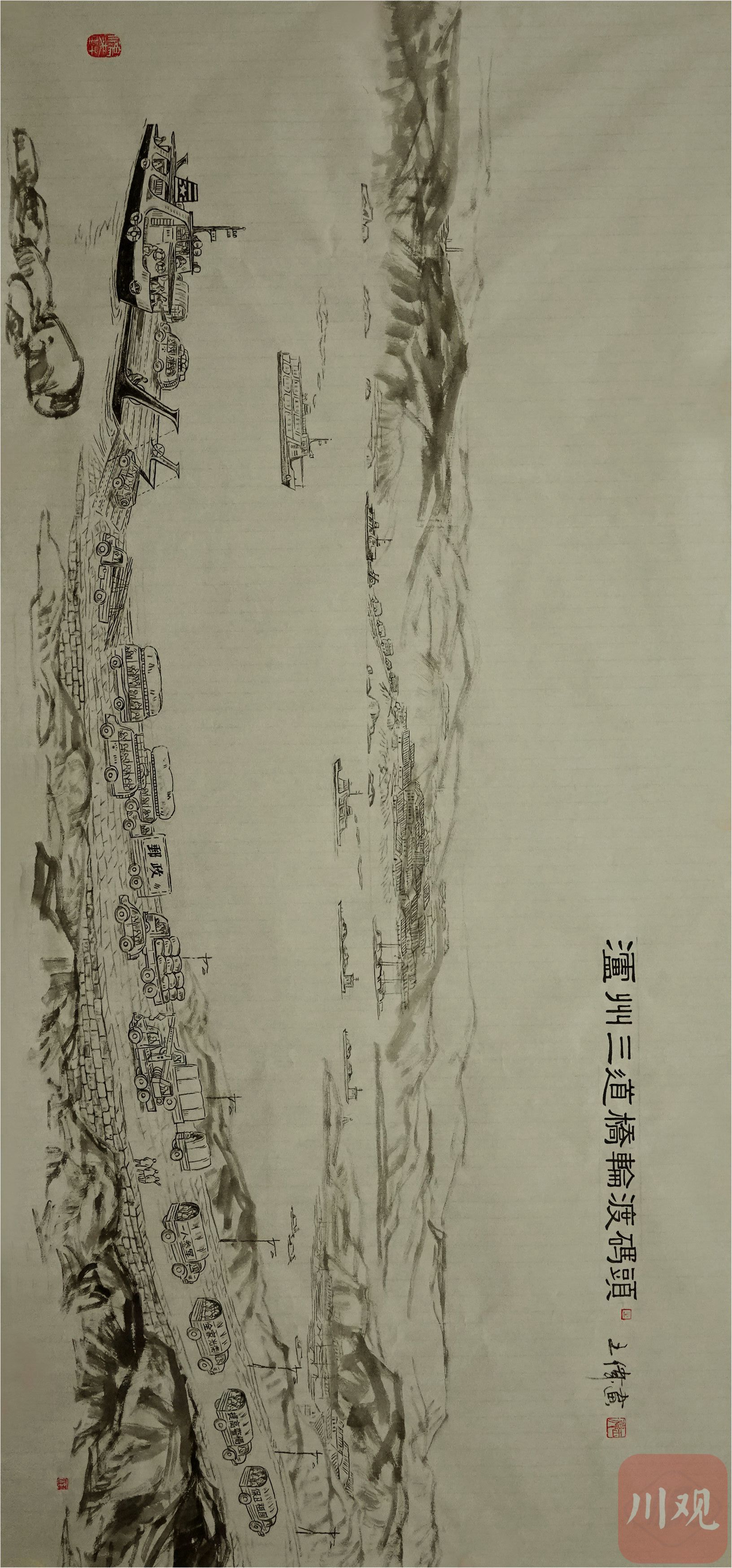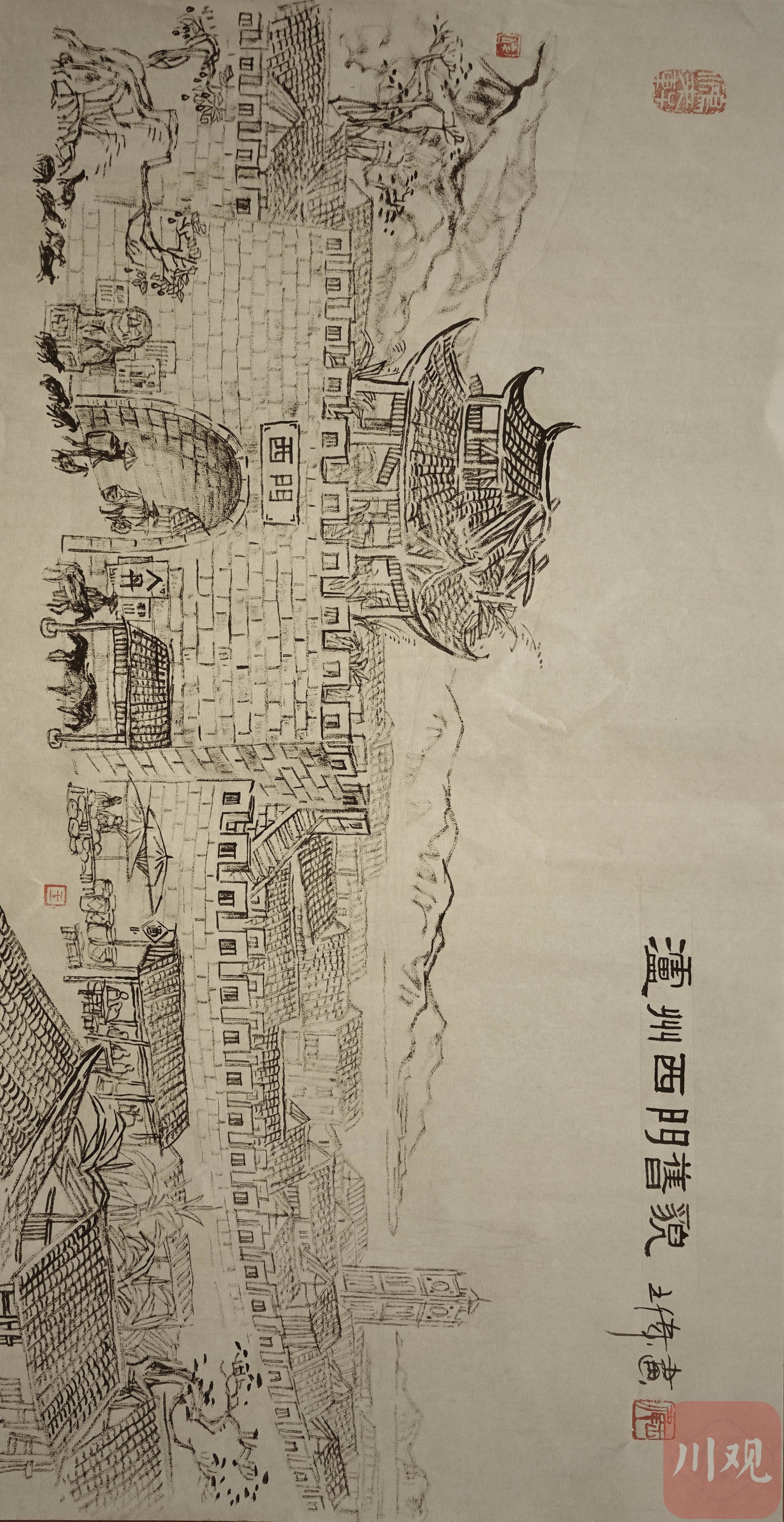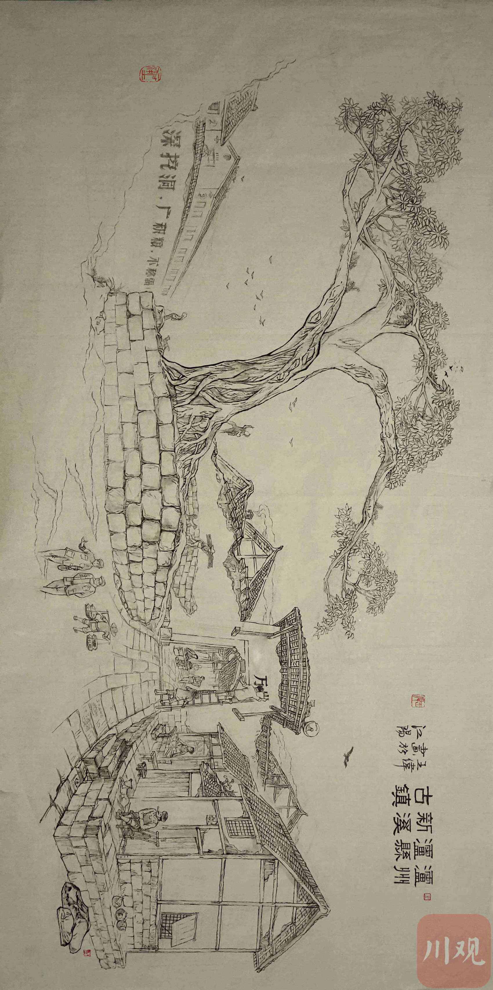 C视觉摄影师王伟,耗时一年半精心创作,运用国画白描技艺完成了百幅《梦回老泸州》系列作品。他凭借摄影师独特的视角与航拍的宽广视野,跨越百年光阴,细腻勾勒出泸州:既有城市百年前的古朴风貌,亦涵盖上世纪九十年代的近景轮廓,尤以生动再现五六十年代江阳半岛主城区的繁华景象最为引人入胜。