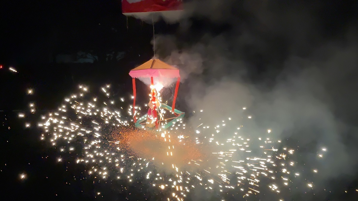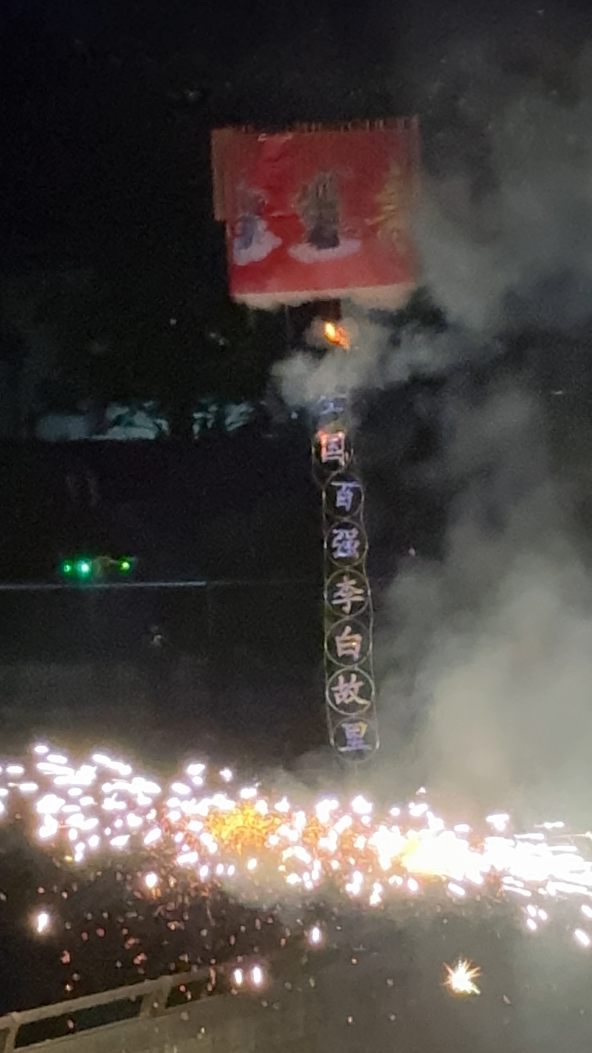 绚烂的烟花中,一个个栩栩如生的“人物”在烟花丛中旋转、跳跃……5月6日,江油市第十二届乡村文化旅游节暨重华镇第十届传统民俗文化节开幕。20时许,重华“烟火架”的燃放将活动推向高潮。据了解,江油重华“烟火架”产生于清代,距今约有300年的历史,有“烟火架儿”“烟花架儿”“焰火架”之称。重华“烟火架”与现代烟火的主要区别在于,它是集爆竹、烟花、戏剧人物造型等于一体的民间传统技艺,其中的戏剧人物多取材于“五女拜寿”“八仙过海”“二十四孝”“太白醉酒”等传统故事题材。本次燃放的“烟火架”共十二层,直径约1.5米,新增了“李白故里”“海灯故里”对联等内容。