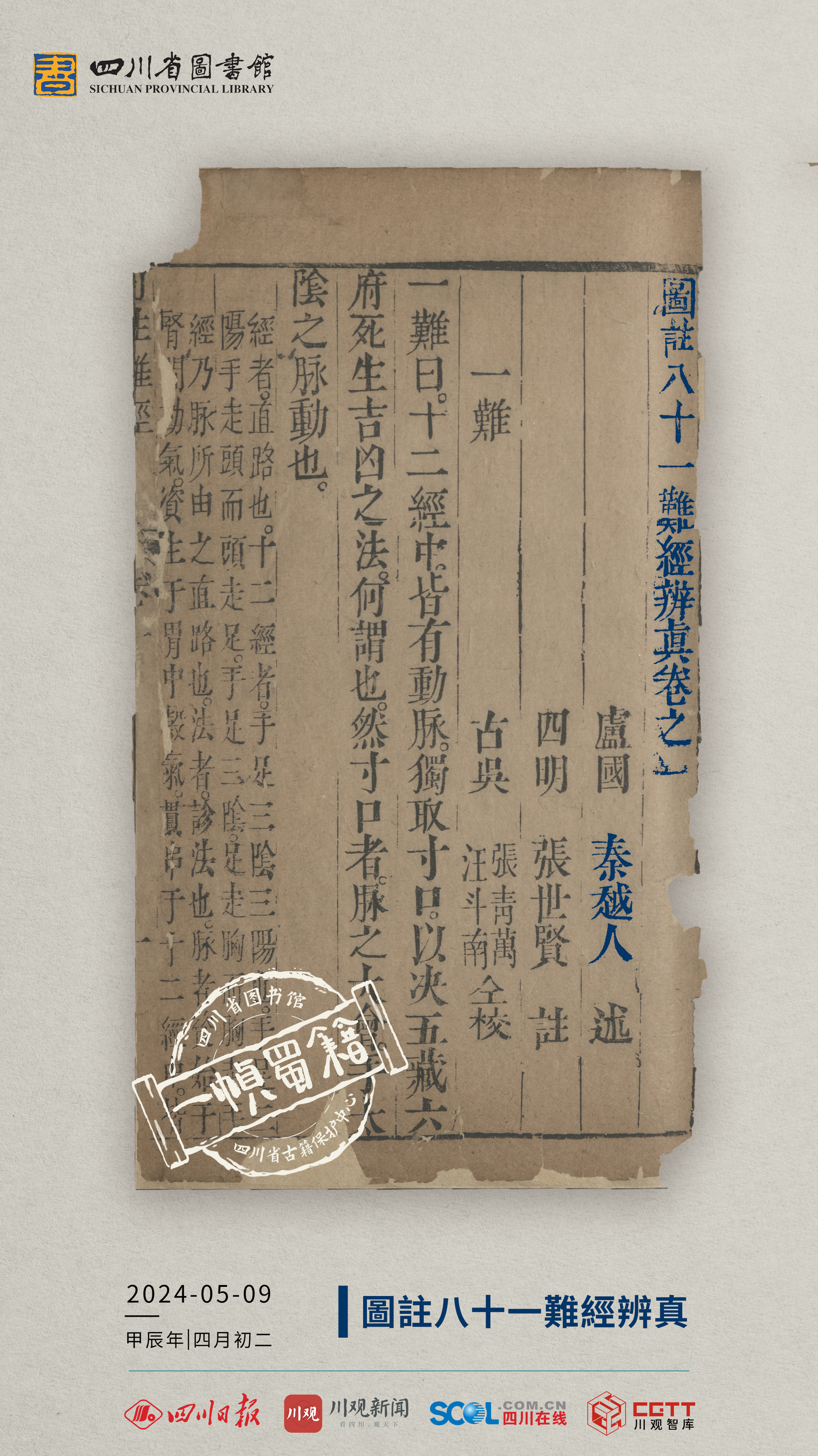 在四川典藏的古籍里,也不乏中医药类经典。5月9日,一帧蜀籍带你继续相约医经著作《图注八十一难经辨真》。