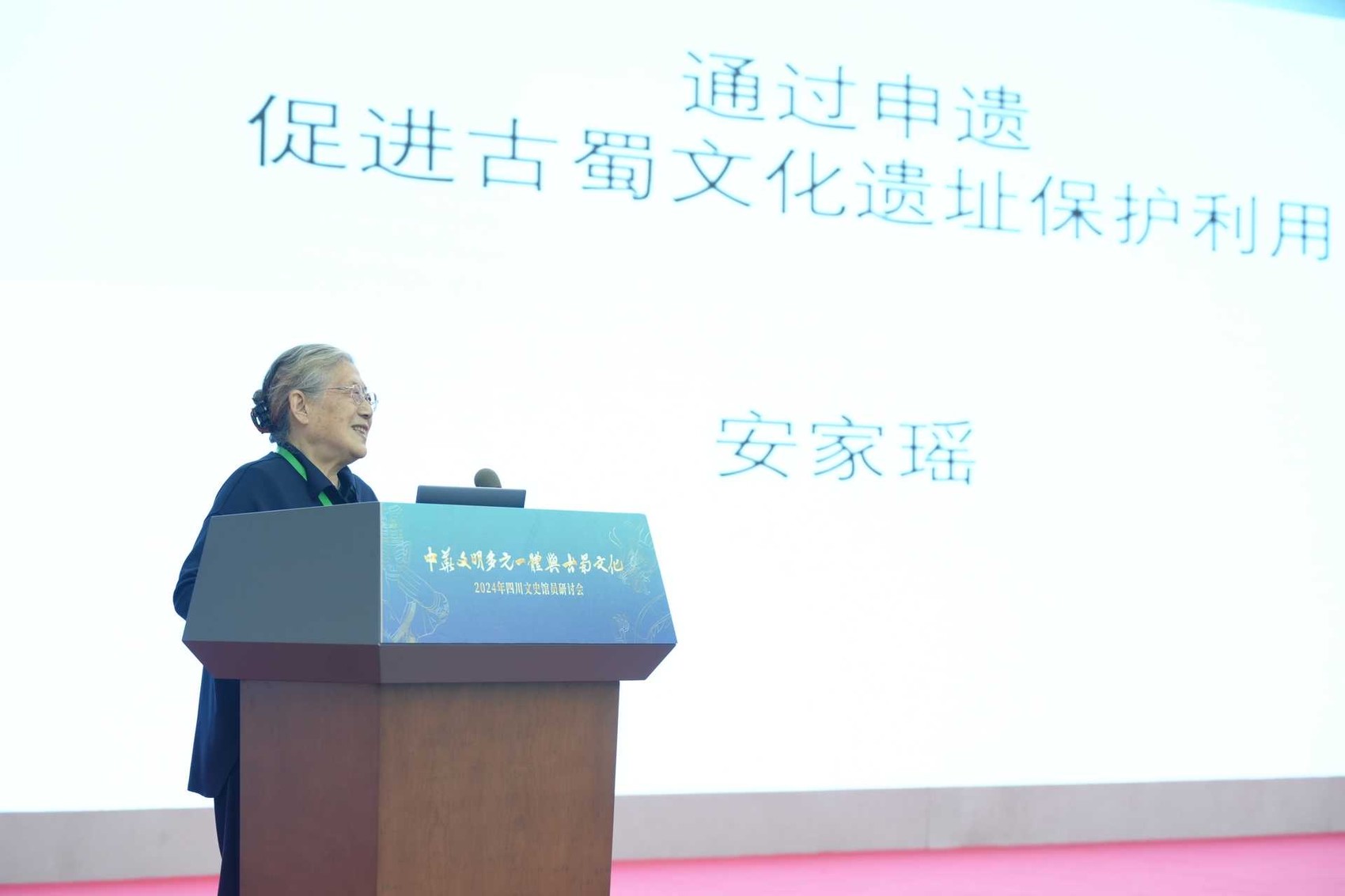 会上,中央文史研究馆馆员安家瑶表示,三星堆遗址和金沙遗址具有申报世界遗产目录的实力。
