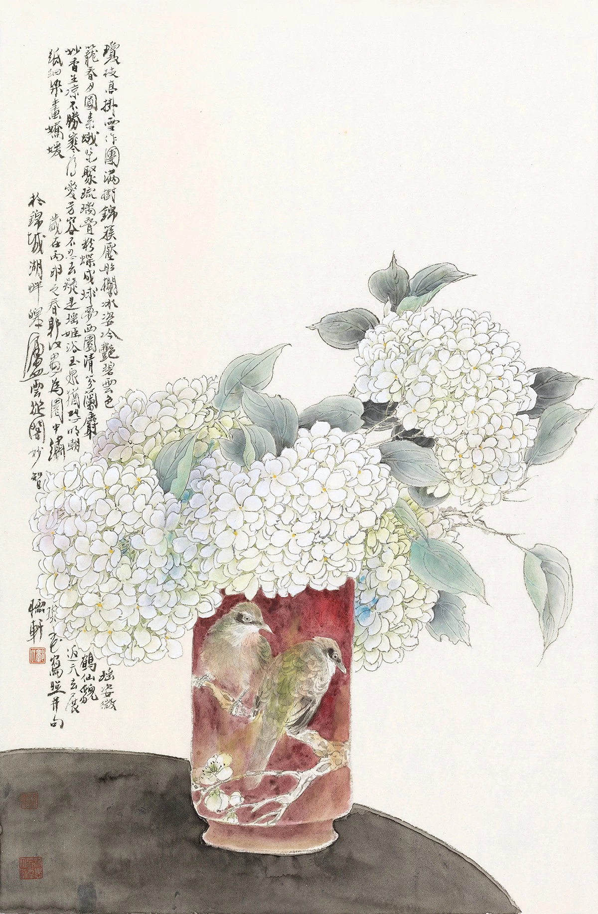 绣球花(中国画),尺寸:66cm×43cm,郭汝愚 作