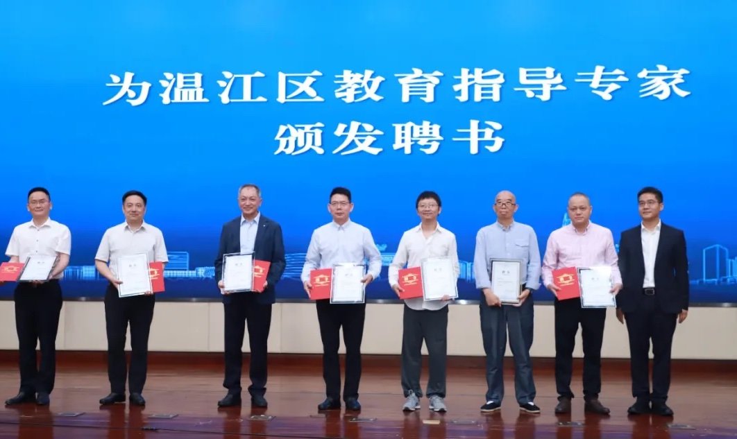 签约仪式上,成都市教育局、温江区相关领导向电子科技大学教授、大数据研究中心主任周涛,四川大学“医学+信息”中心主任、四川大学华西生物医学大数据研究院院长张伟等9名专家、教授颁发教育指导专家聘书。