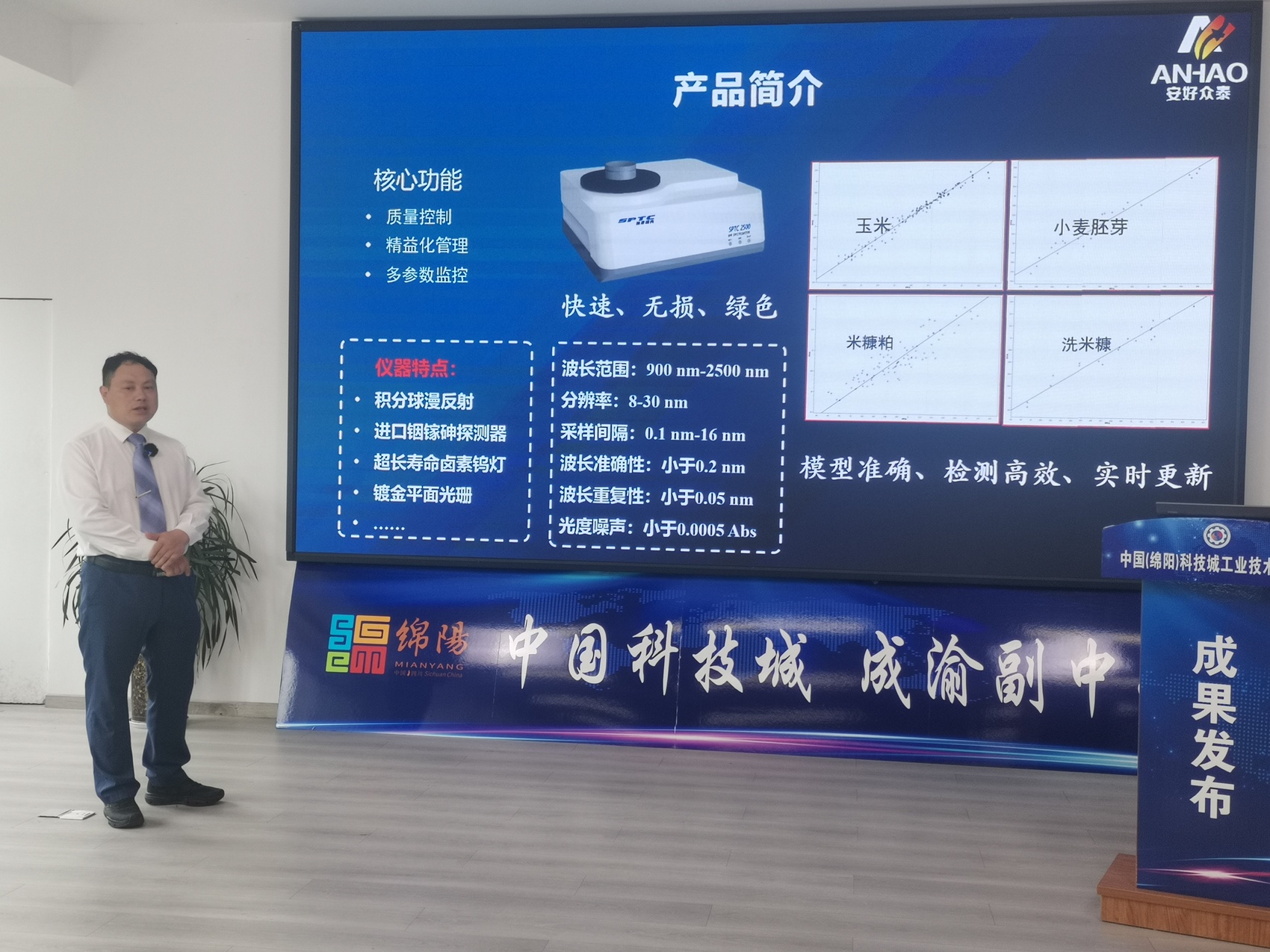 2024年5月9日,中国(绵阳)科技城工业技术研究院举行线上发布会,推出了由绵阳科技企业(四川安好众泰科技有限公司)研发生产的一款新型近红外光谱分析仪。