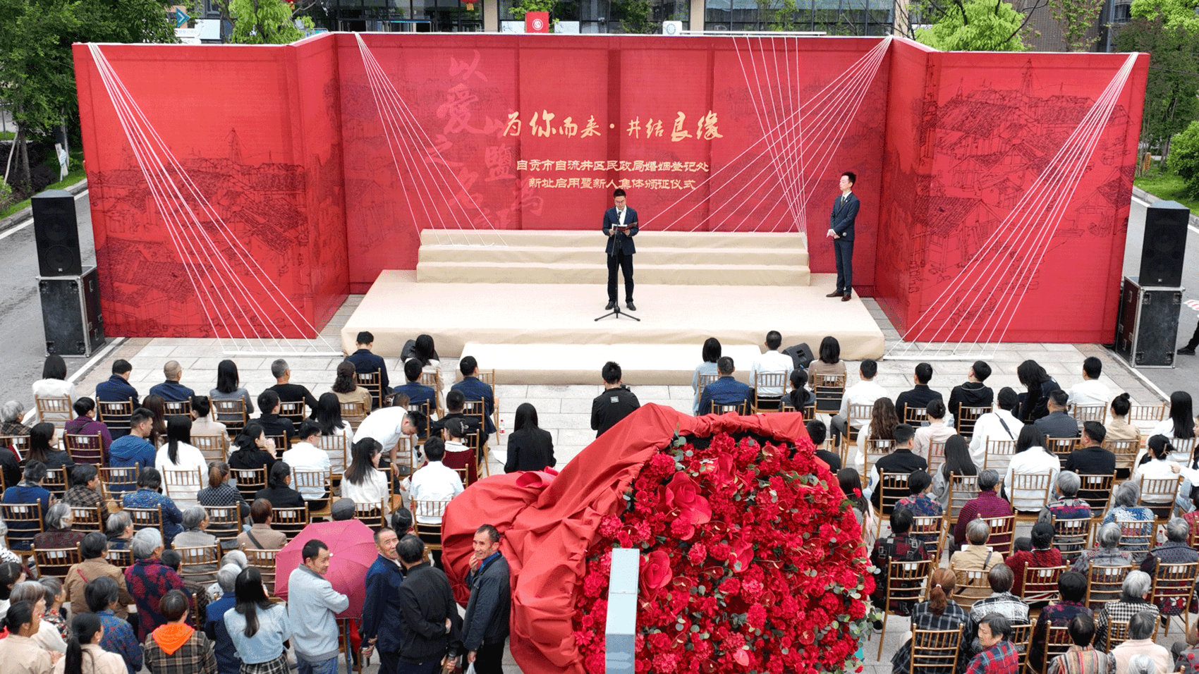 活动在一片温馨而庄重的氛围中开始,以“为你而来,井结良缘”为主题,四川省民政厅社会事务处副处长黄海莺、自贡市民政局党组书记徐浩泳、自流井区人民政府副区长周云帆等省市区领导亲临现场,见证这一重要时刻。新址启用不仅是硬件设施的升级,更是服务理念的革新,全新的登记场地宽敞明亮,“沉浸式”打卡场景温馨有爱,婚纱礼服免费租赁等暖心服务,让每一对前来办理婚姻登记的新人都能真切感受到“民政的温度”。