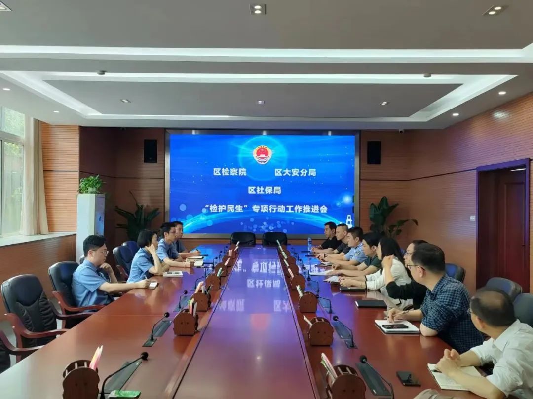 为深入贯彻落实最高检、省检察院、市检察院开展“检护民生”专项行动有关工作要求,切实维护和保障人民群众合法权益,近日,自贡市大安区人民检察院联合区社保局、区大安分局召开“检护民生”专项行动工作推进会,围绕社会保险、就业养老等民生热点问题,运用检察力量主动服务保障民生重点领域。