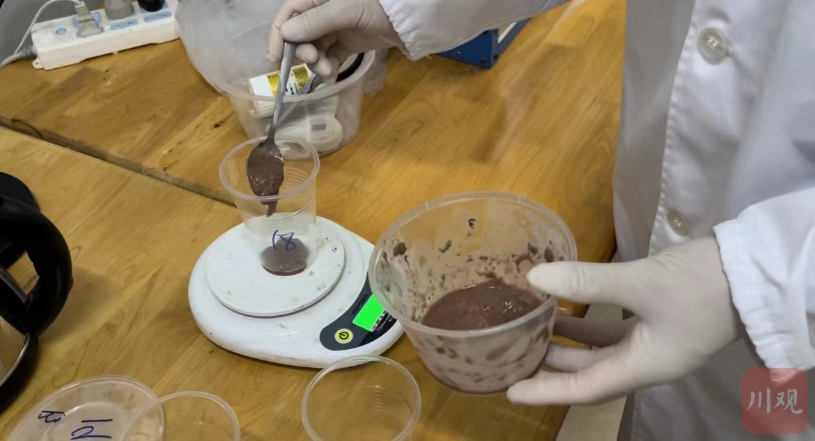 记者注意到,育雏室的冰柜里,叠放有多份提前制作好的深色泥状食物。“这些都是昨天按比例搅拌好冷藏保存的,主要成分是泥鳅、黑鱼和蛋黄。”吴永中取出一盒,拿出几个写有每只雏鸟所喂食克数的小杯,一杯杯精准分配、称重。