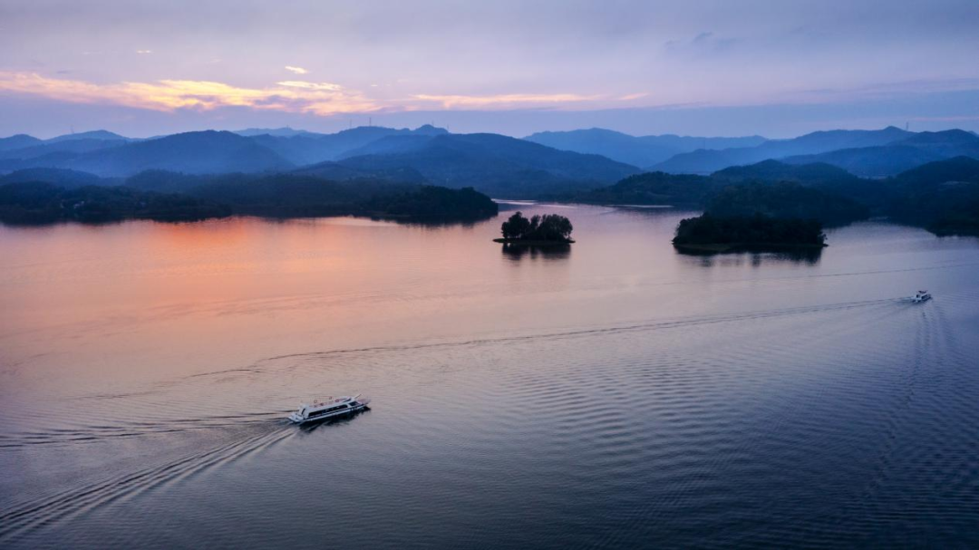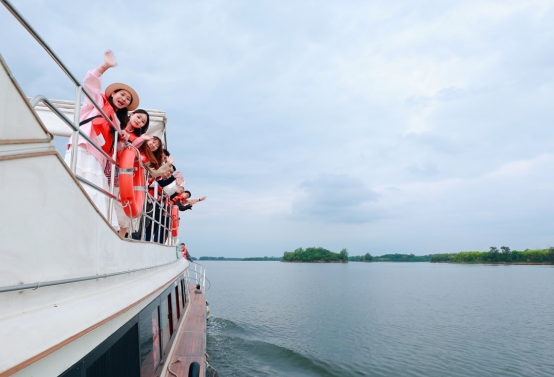 在三岔湖,仰可观云、俯可赏湖。登上岸边停驻的观光游船,一层为舒适宽敞的座位,二层为视野开阔的观景区,可将两岸湖景尽收眼底。