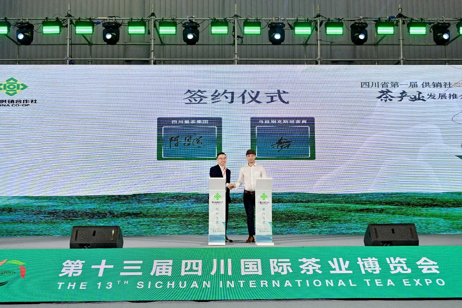 四川蜀茶集团与乌兹别克斯坦客商现场签订了茶叶外贸合作协议。
