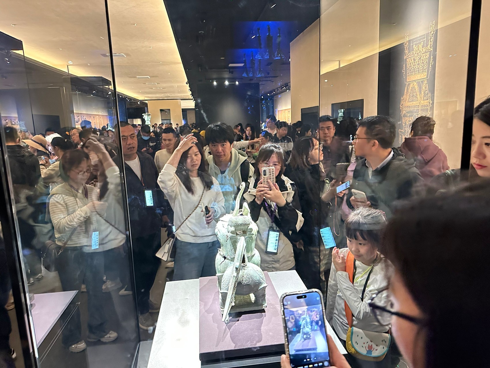 对观众而言,即使有票进馆,观展环境也大不如前。记者在多家热门博物馆曾多次看到,小朋友在展厅喧哗乱窜,自媒体举着自拍杆旁若无人高声直播,一拨拨团队客人霸着中心展柜让散客几乎挤不近身。