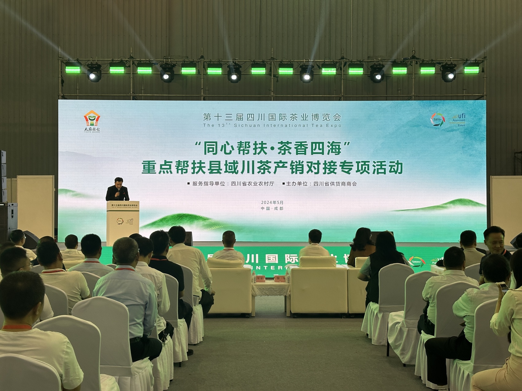 5月10日,作为第十三届四川国际茶叶博览会重点活动之一,“同心帮扶·茶香四海”重点帮扶县域川茶产销对接专项活动在成都世纪城新国际会展中心6号馆举办,精准针对全省50个乡村振兴重点帮扶县和39个欠发达县域搭建茶叶产销对接平台。