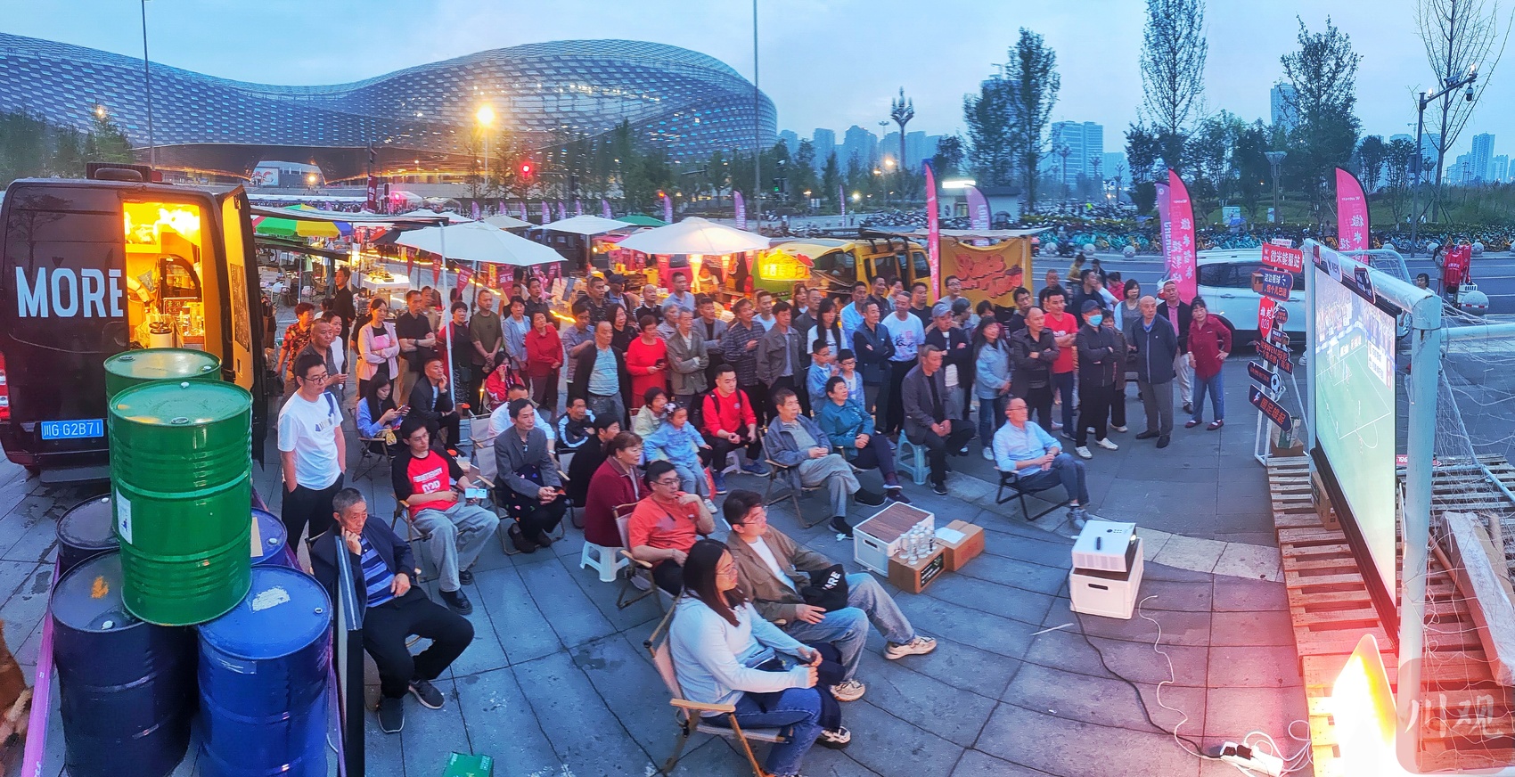 球迷在场馆外收看成都蓉城与河南杜康的比赛直播