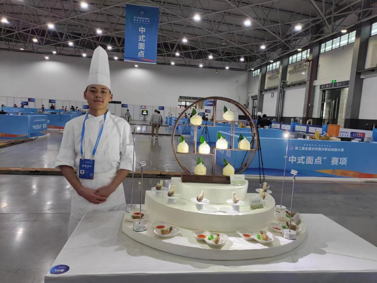 从贵州威宁的偏远山区免费进入中职学校学习技能,凭借自己的努力升到高职,学习期间多次荣获技能竞赛奖,康进是贵州食品工程职业学院烹饪工艺与营养专业的大二学生,在第二届全国乡村振兴职业技能大赛上,他又以全省第一的成绩进入到“中式面点”的国赛赛场。