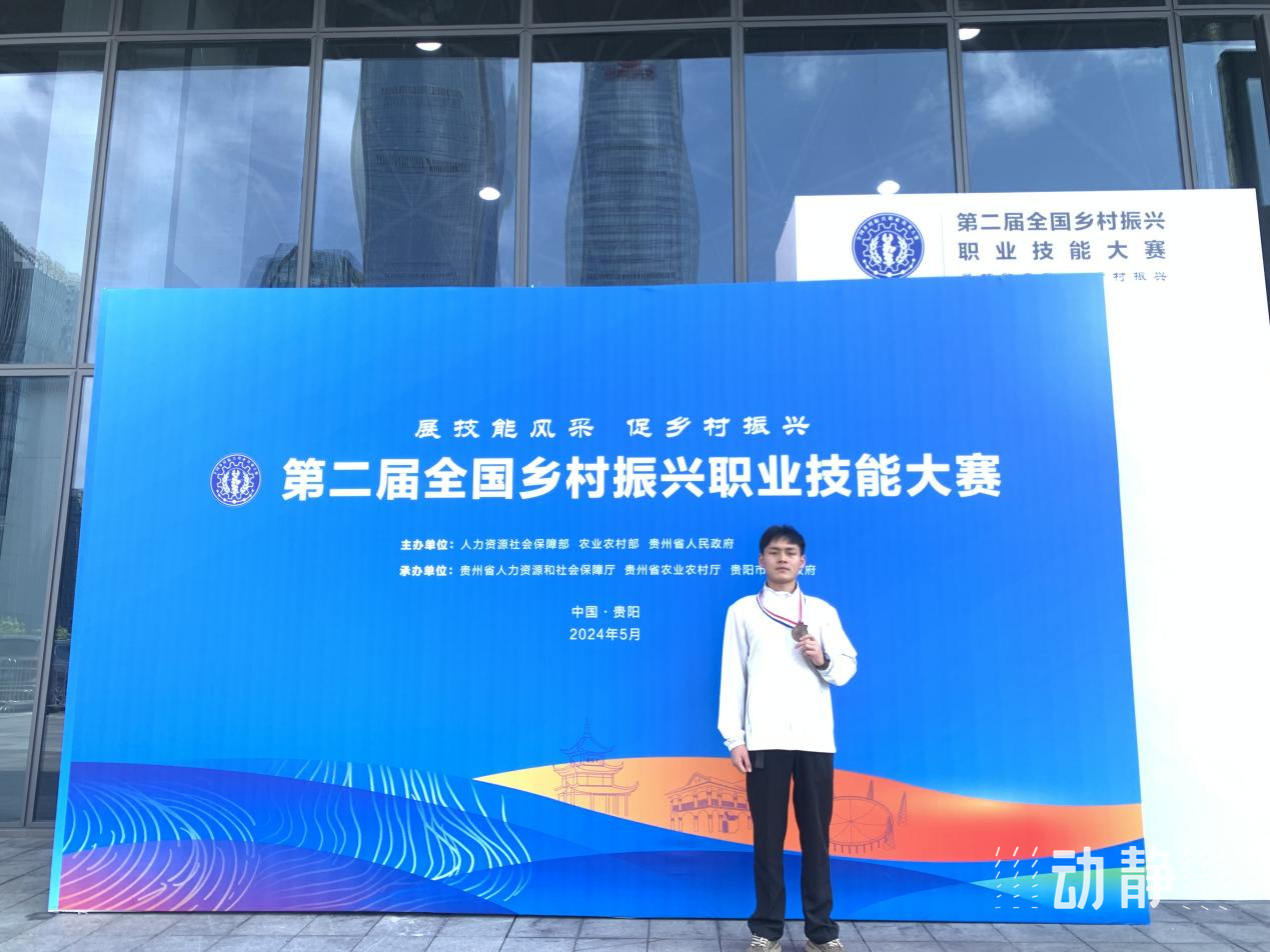 人才无问东西,技高自成芳华。记者了解到,在5月10号的第二届全国乡村振兴职业技能大赛闭幕式上,贵州参赛代表王开明和田池获得了银牌,康进获得铜奖。