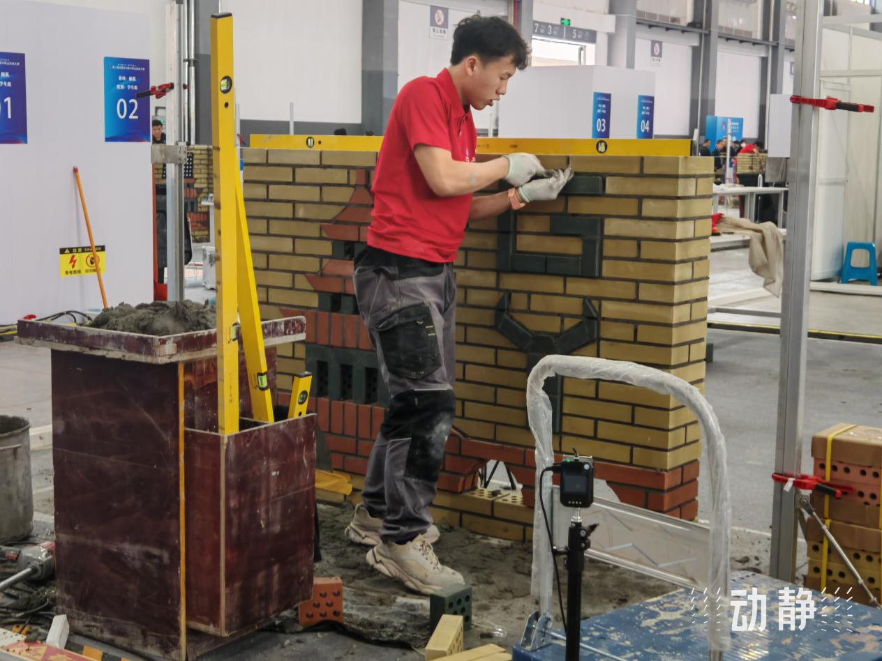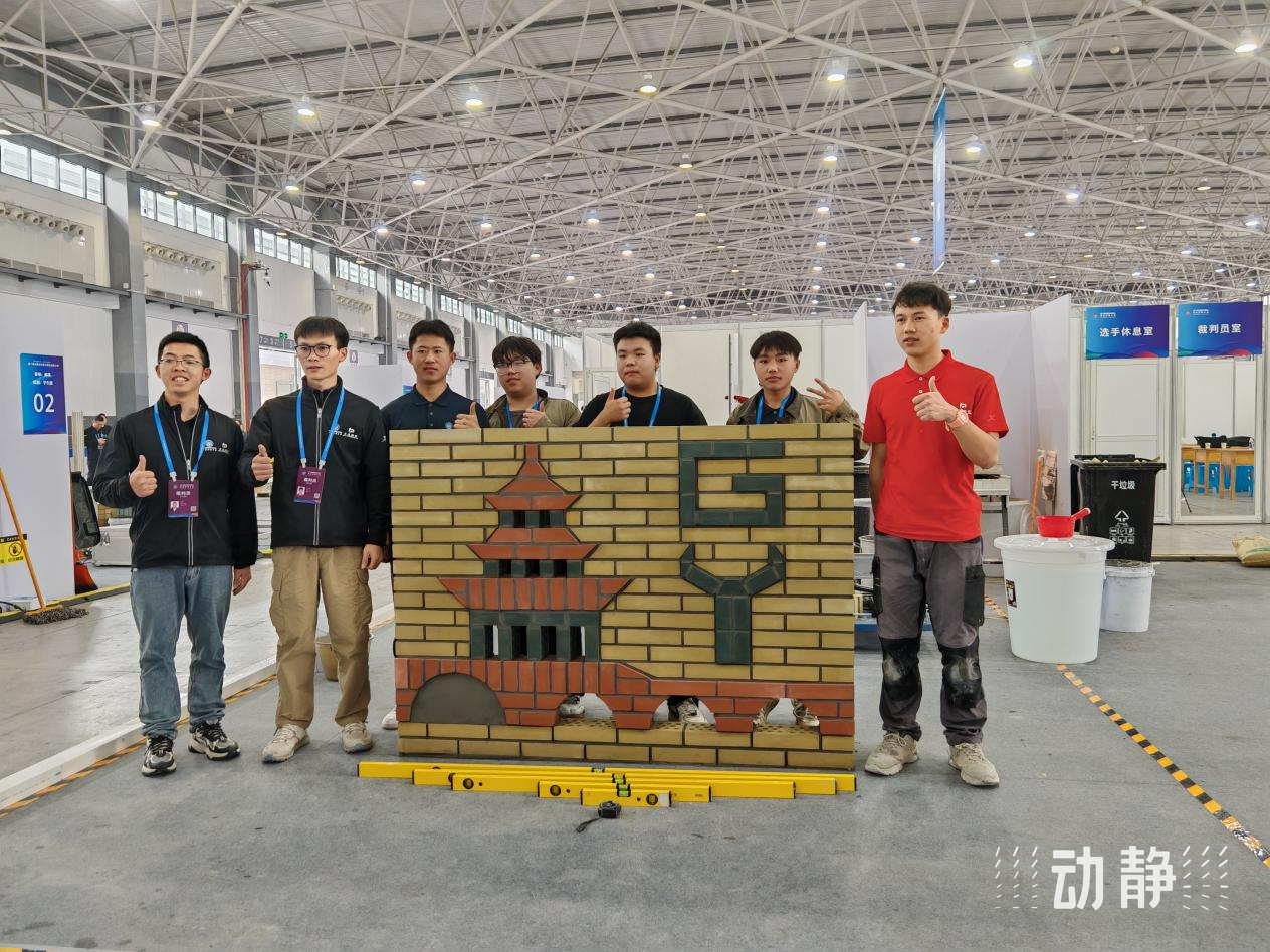 这是王开明第一次参加这样的大赛,心里有些紧张,为了缓解紧张的情绪,王开明说,“我的方法是让自己专注起来。这次国赛,虽然一开始在切割砖块时有一点小失误,但对整体表现还是比较满意,完成整个作品用时也比练习时提前了四五分钟。”