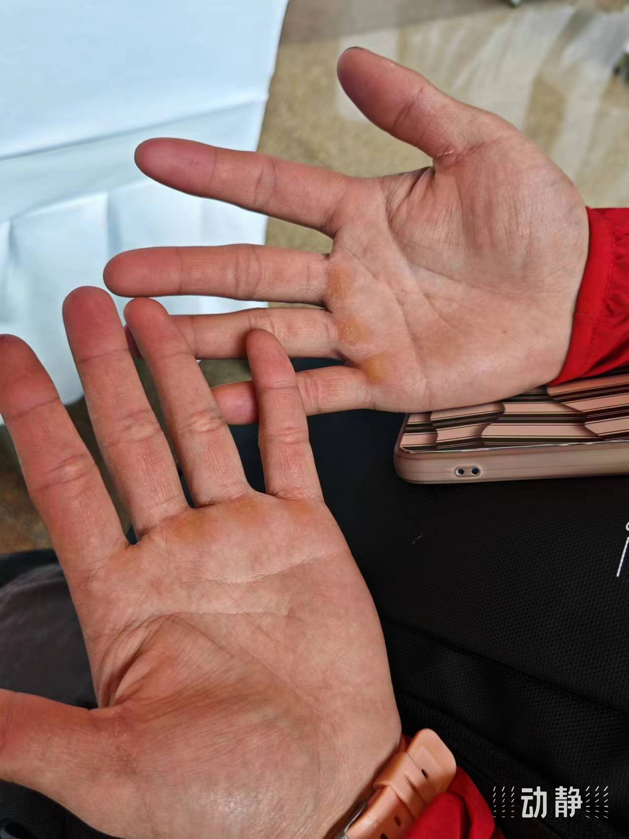 学汽车维修是很辛苦的,田池伸开双手,手上布满了大大小小20多处伤痕。由于经常要拆装汽车零件,每天在零件上磨,他的手上布满老茧。“刚开始学,手上要磨起大泡,很痛。时间长了,就变成老茧。”