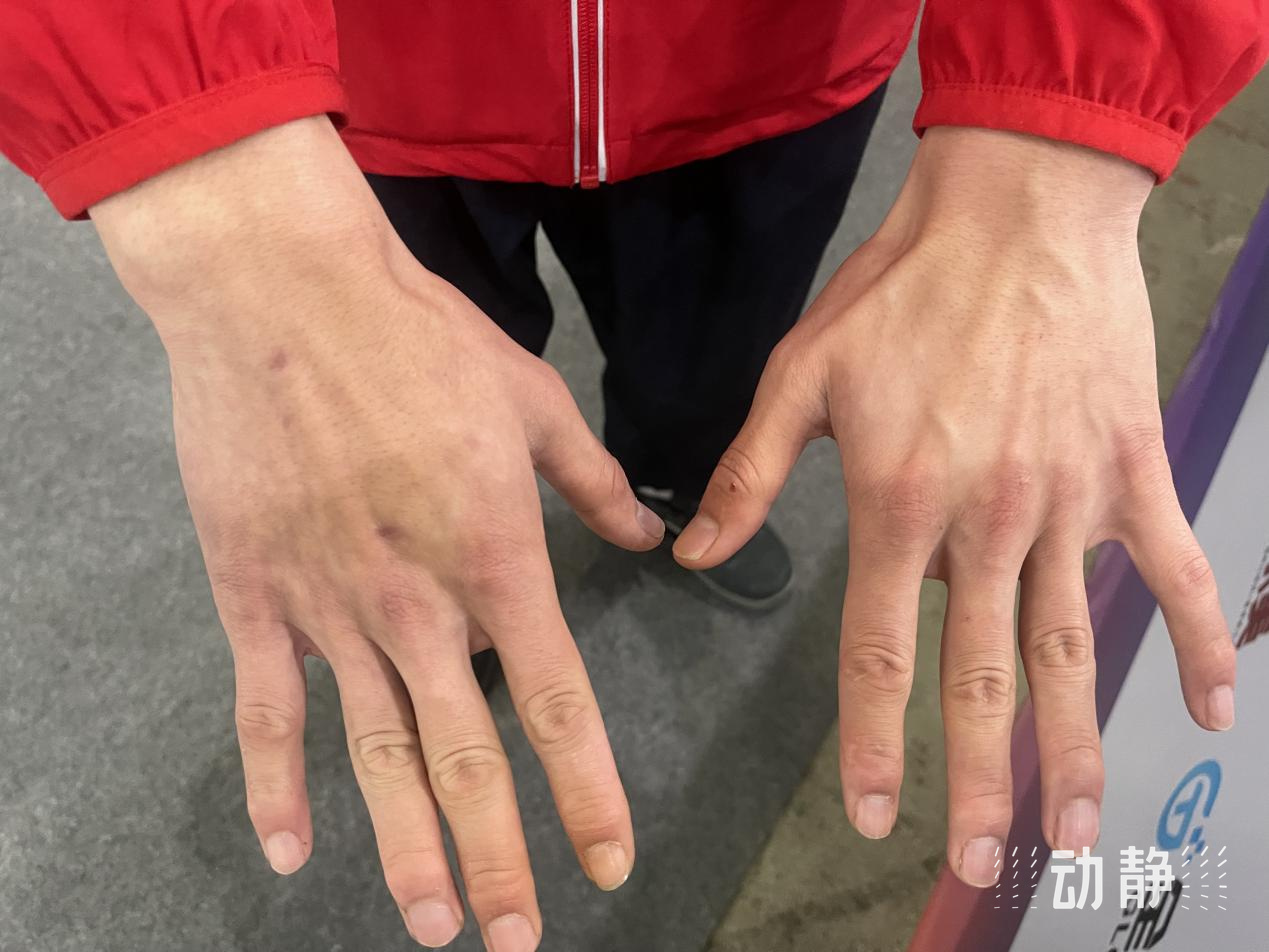 “台上三分钟,台下十年功。”为了比赛能取得好成绩,早在半年前,王开明就开始找不同的图案进行砌筑练习,因为要反复地砌砖、打浆,今年只有17岁的王开明双手已经长出了厚厚的老茧。