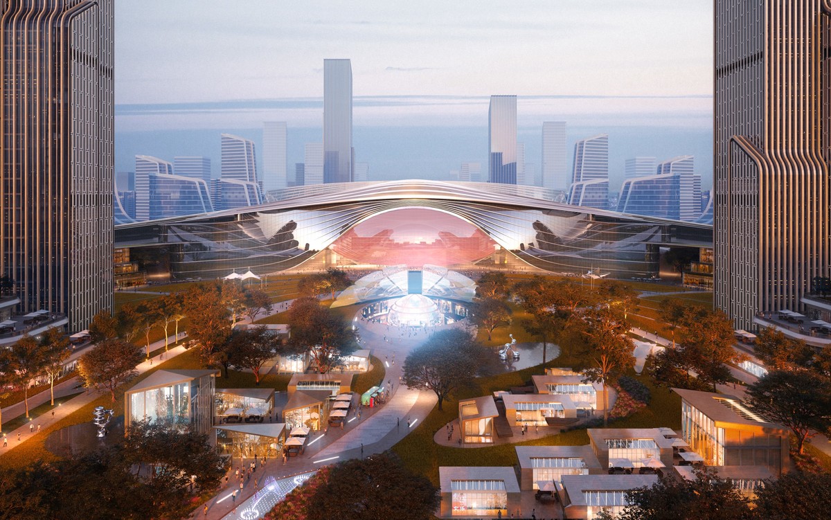 成都天府新站TOD项目的打造中,将川西林盘元素融进了其中。 效果图