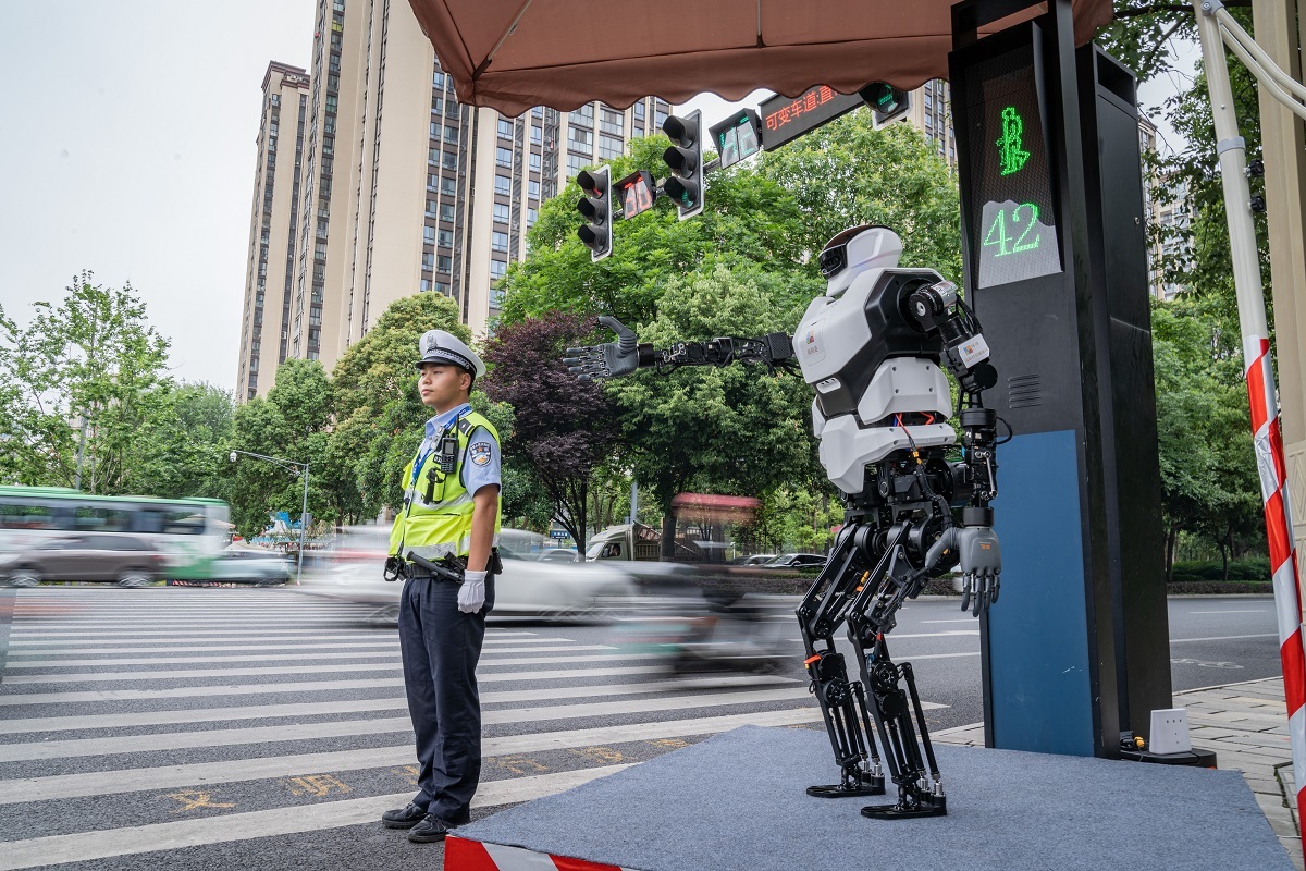 机器人交通智能劝导员正在工作中。 唐超 摄