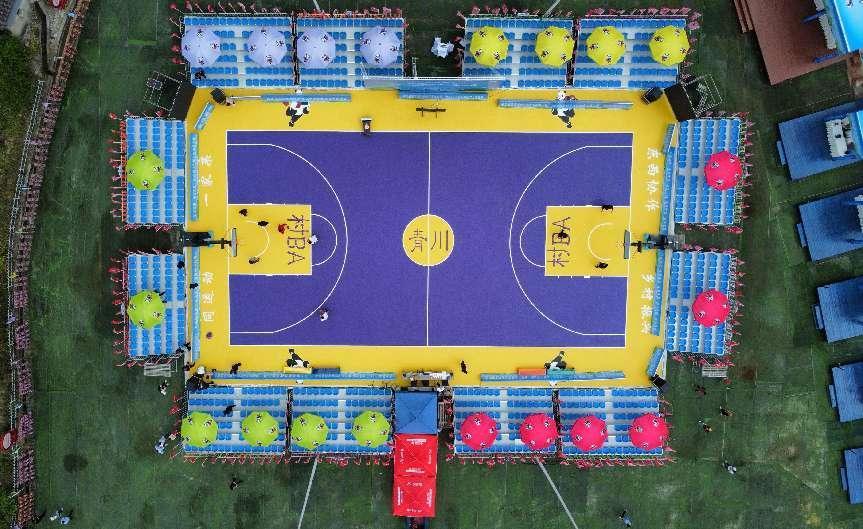地坪村体育公园篮球场准备就绪。青川融媒体中心供图