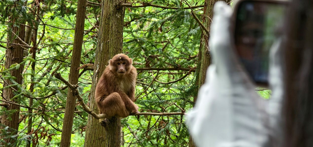 游客在唐家河国家级自然保护区观光途中,偶遇藏酋猴。罗敏 摄