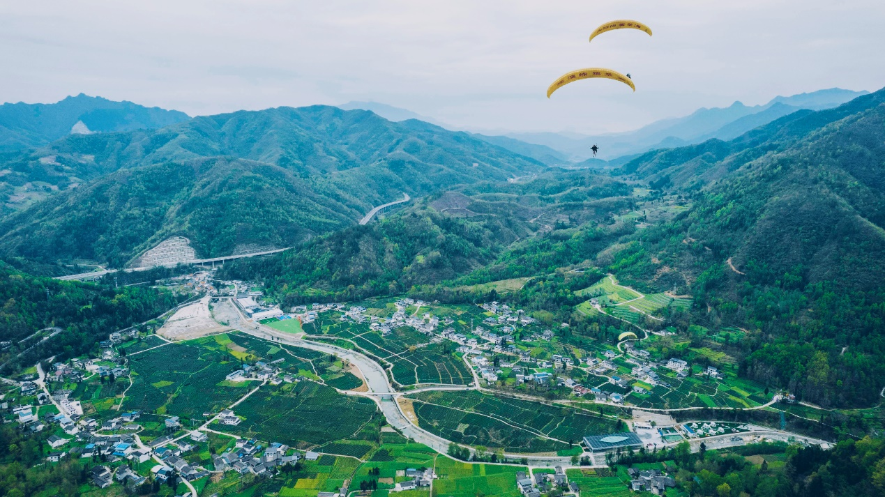 游客在地坪村体验滑翔伞飞行。青川县融媒体中心供图