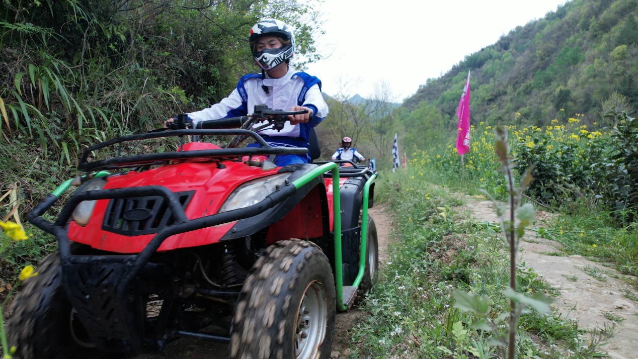 游客在地坪村体验山地越野摩托车。青川县融媒体中心供图
