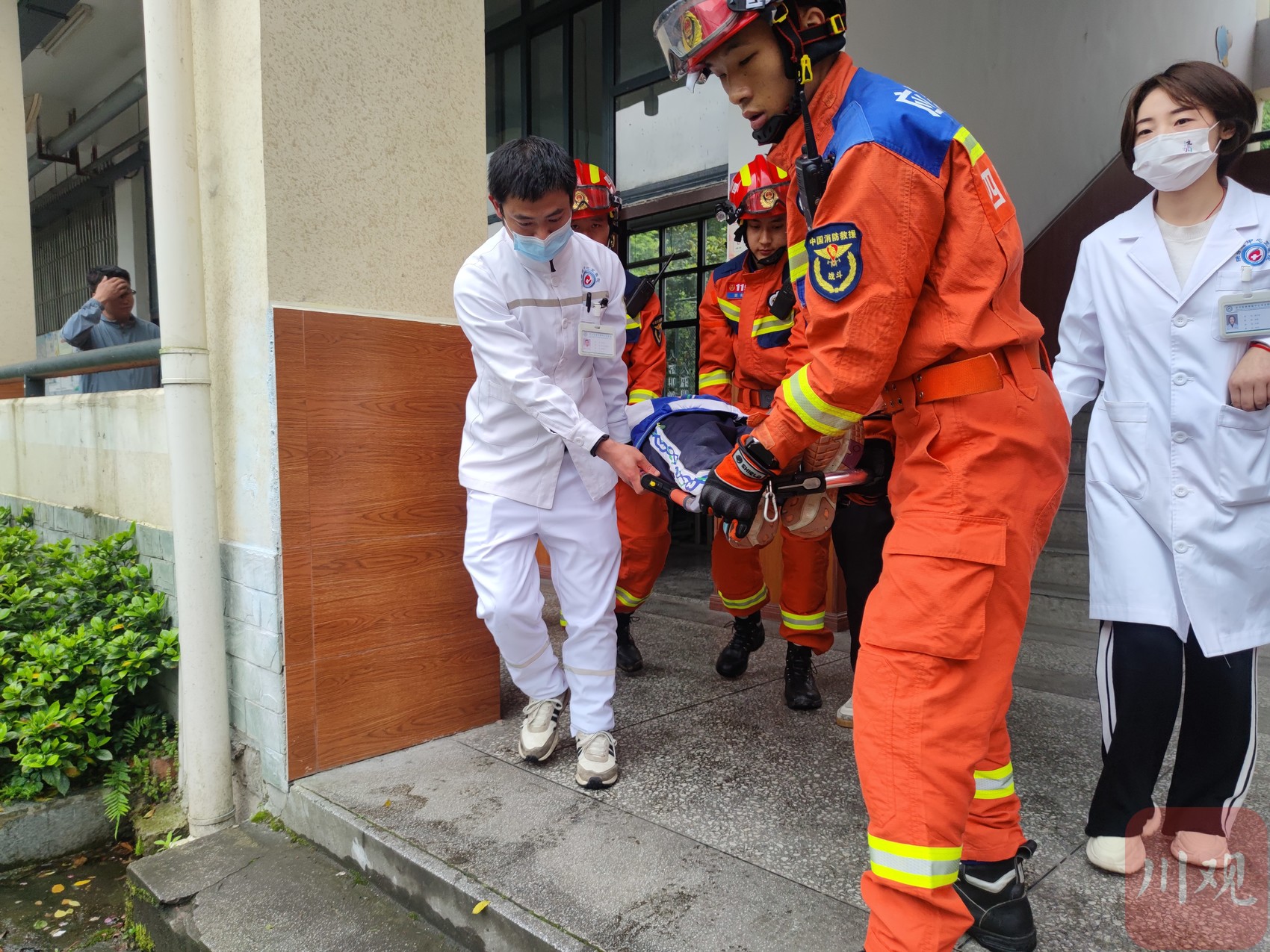 此次演练中,还对未能成功疏散的情况进行了应对演练。救援组在消防搜救队的带领下开展搜救行动,医疗队进入现场进行急救处理,并在现场开展急救教育示范教学,进行外伤包扎和心肺复苏抢救。