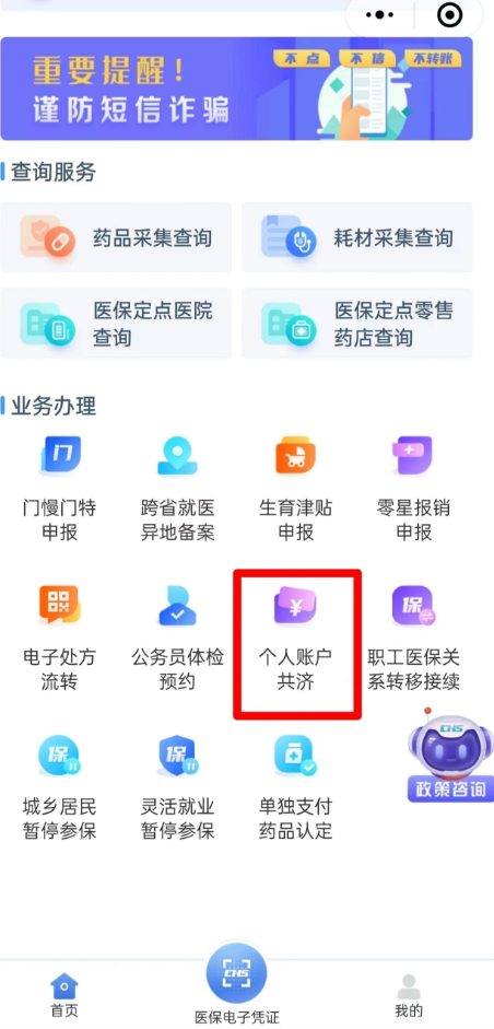温馨提示,参保人可通过国家医保服务平台App地方专区、当地医保部门微信公众号、官方网站等“职工医保个人账户家庭共济”功能模块,实现线上办理,具体途径由各统筹区医保部门向社会公开。以河北省为例,有以下几步: