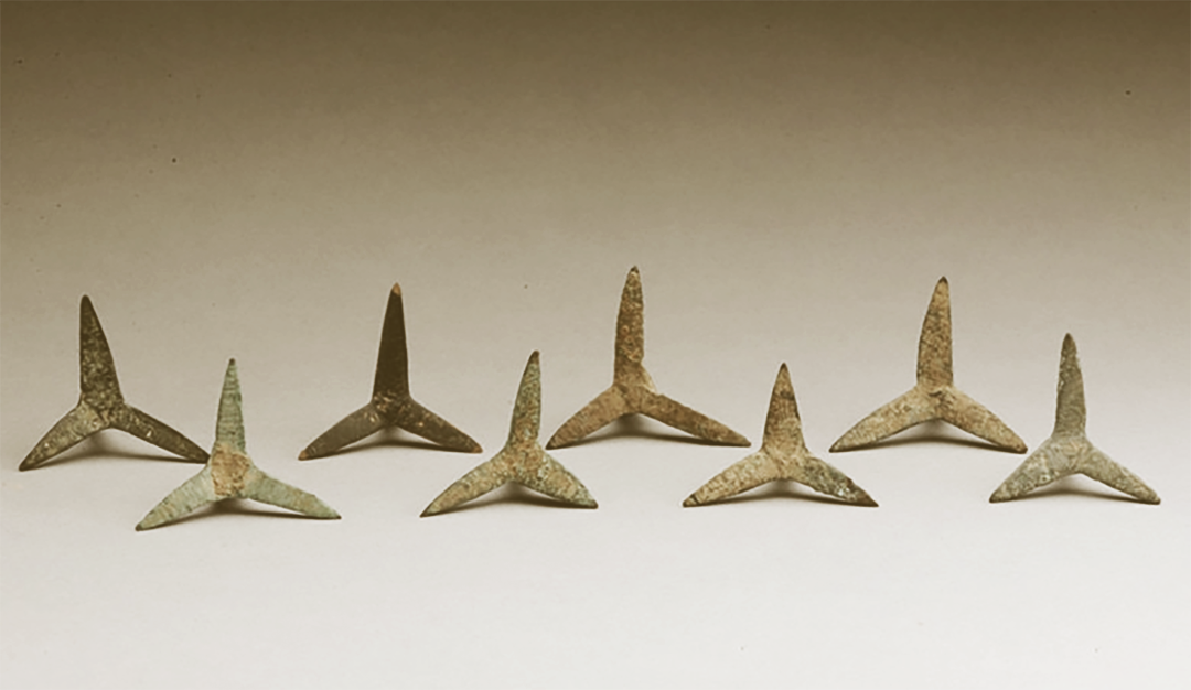 定军山出土三国时期铜蒺藜(勉县博物馆藏)。