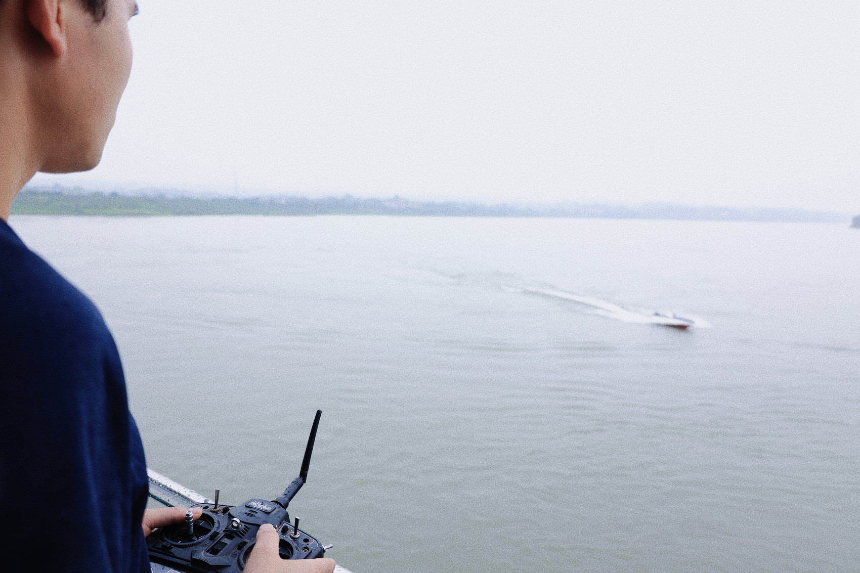 5月12日上午,泸州长江江阳航道处雨势不小。“今日长江水位2.2米,需常态检查航标。”冒着雨,江阳航道处工程师陈亚威将一艘白色无人船放下了水,通过遥控器,对长江上游望龙碛至石龙庙31.7公里长江主航道进行巡航。“操作熟练了,就跟开遥控玩具船差不多。”对重点航段进行手动操作后,陈亚威又坐到电脑旁,设置好沿途巡航点位,开启了无人船的自动巡航模式。