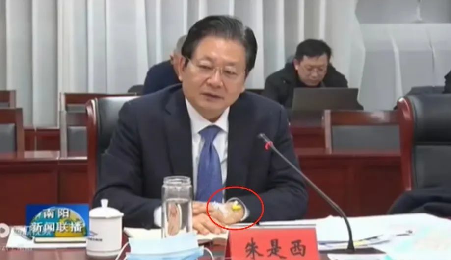 根据南阳当地新闻报道,在出席年初的一次工作会议时,画面显示朱是西带着刚输完液的“留置针”亮相。这里的“留置针”,指的是连续输液时,临床护士会建议留着输液的针头在扎针处,可以免去静脉重新穿刺扎针。